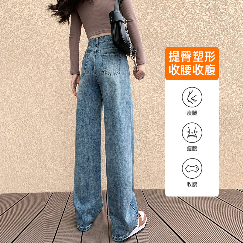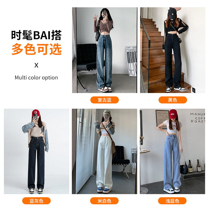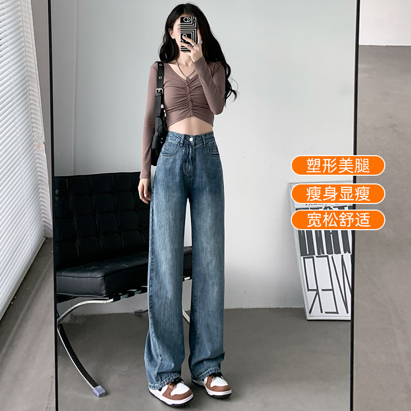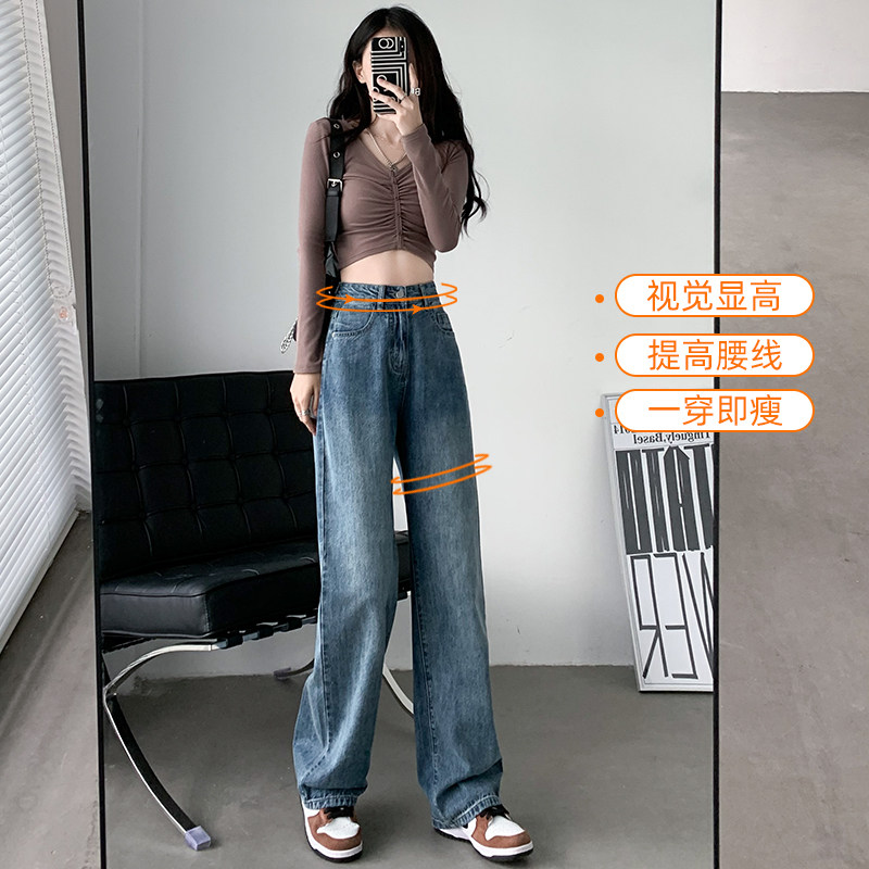 复古高腰阔腿牛仔裤女2026年新款夏季直筒宽松窄版小个子拖地长裤