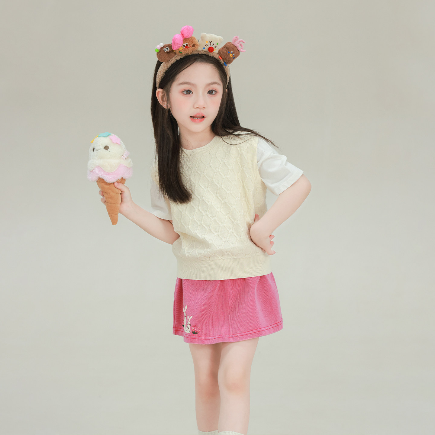 大耳象女童菱格纹毛衣马甲2026春季新款宝儿休闲百搭圆领无袖上衣