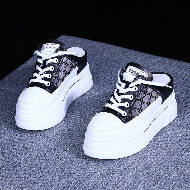 包头半拖鞋女夏外穿2026新款厚底小白鞋时尚懒人鞋内增高女鞋8cm
