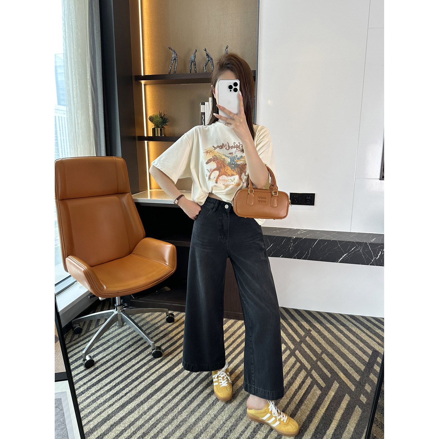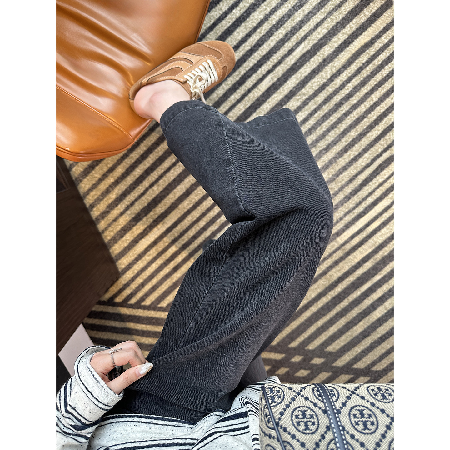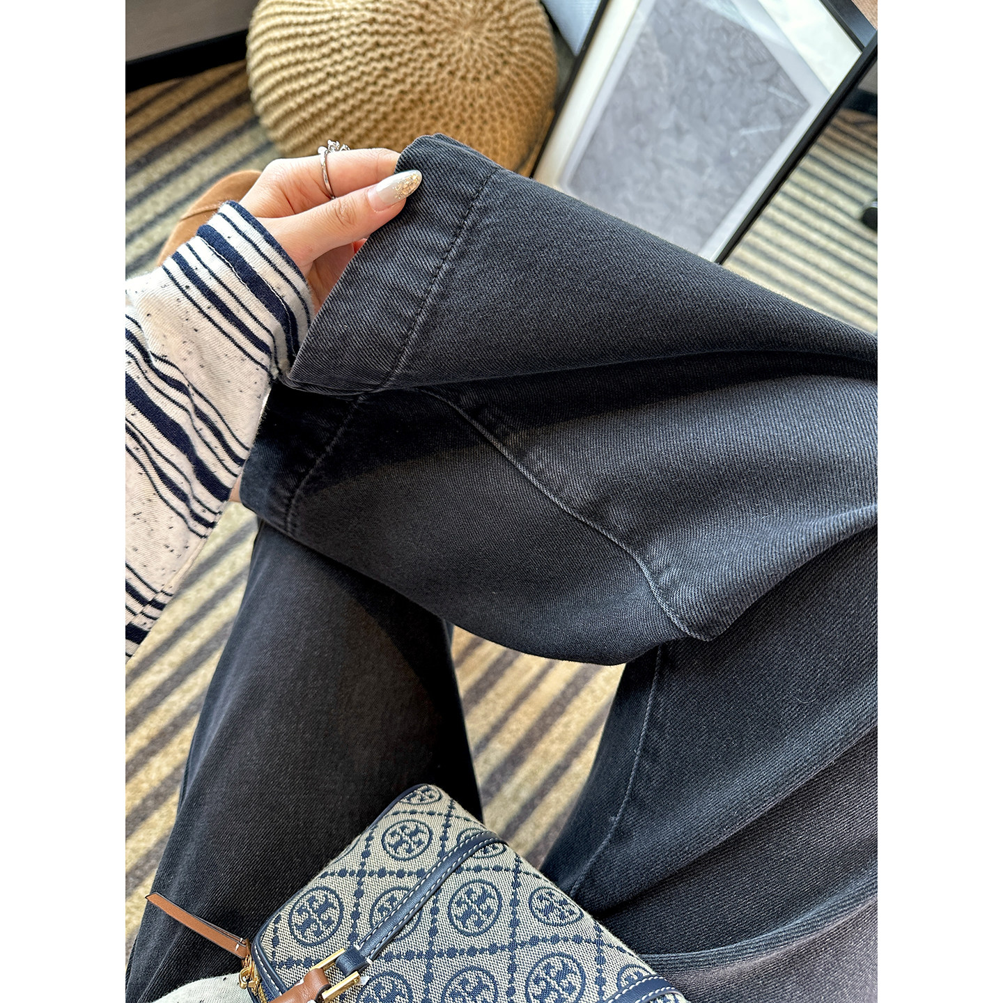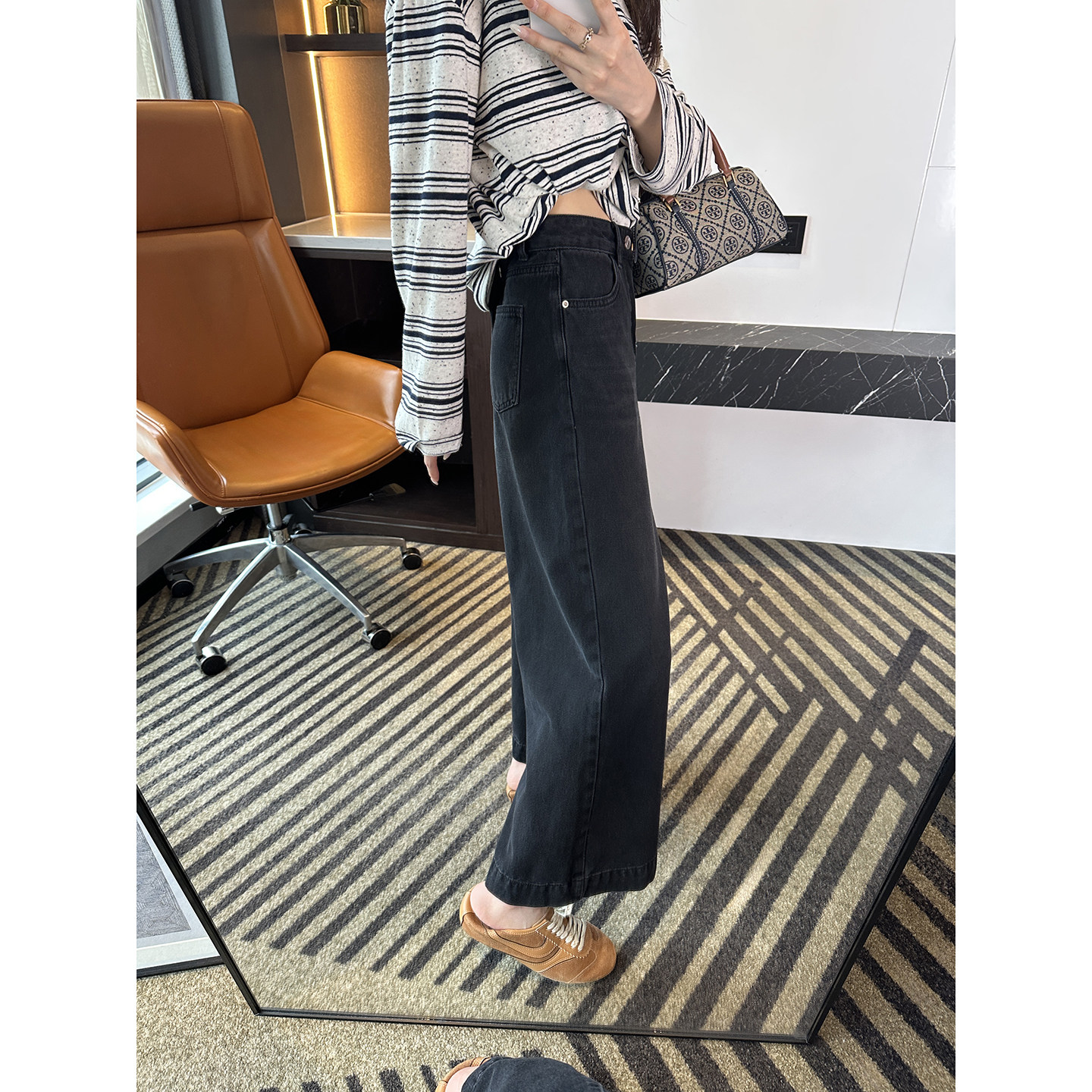 版型吹爆!~黑灰色九分阔腿牛仔裤女2026新款小个子宽松直筒裤子