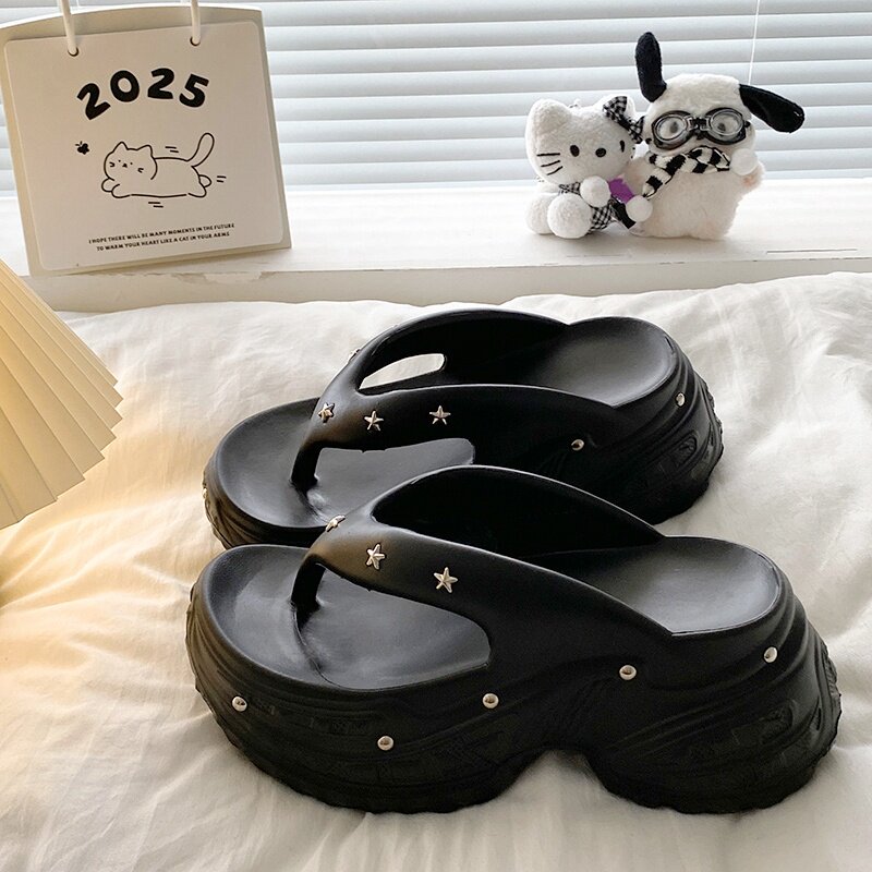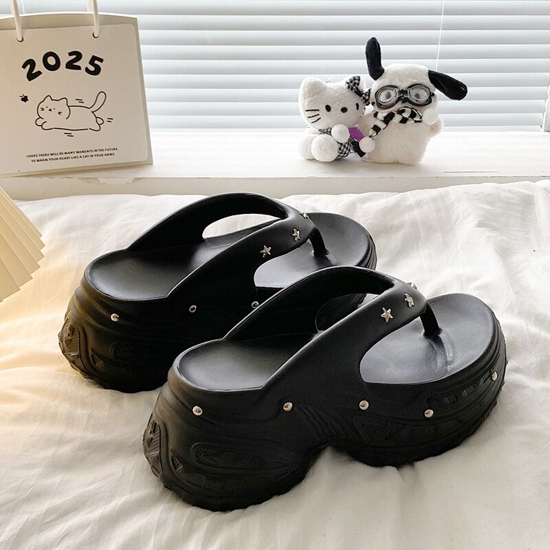 巨显高厚底~小个子增高8厘米人字拖外穿女夏防滑软底沙滩夹趾拖鞋