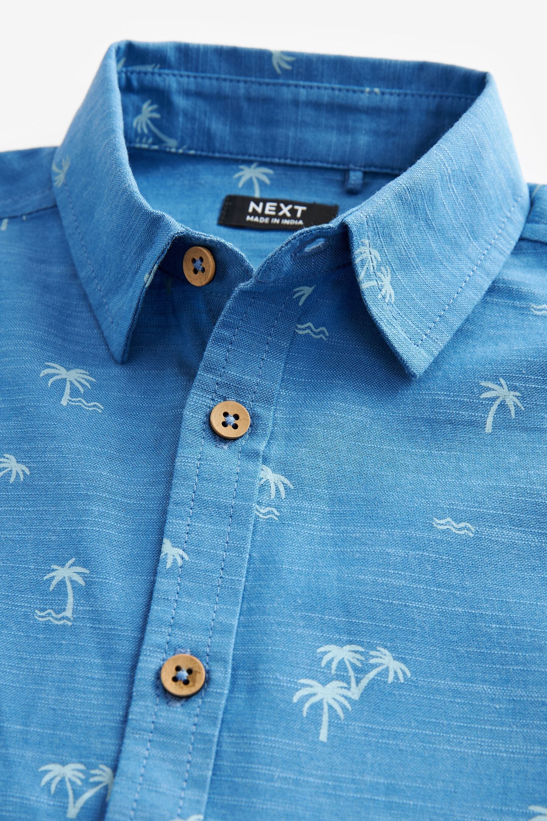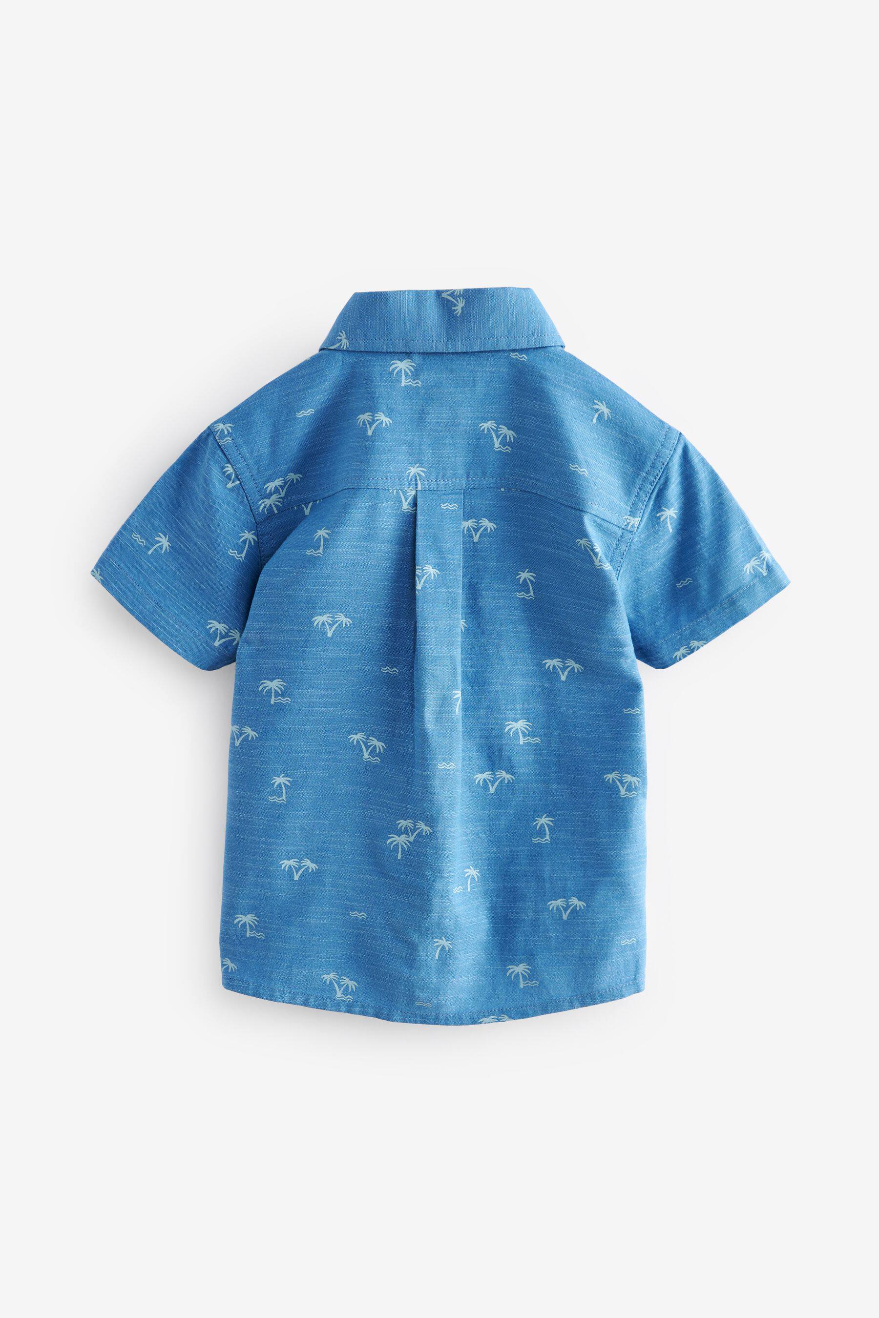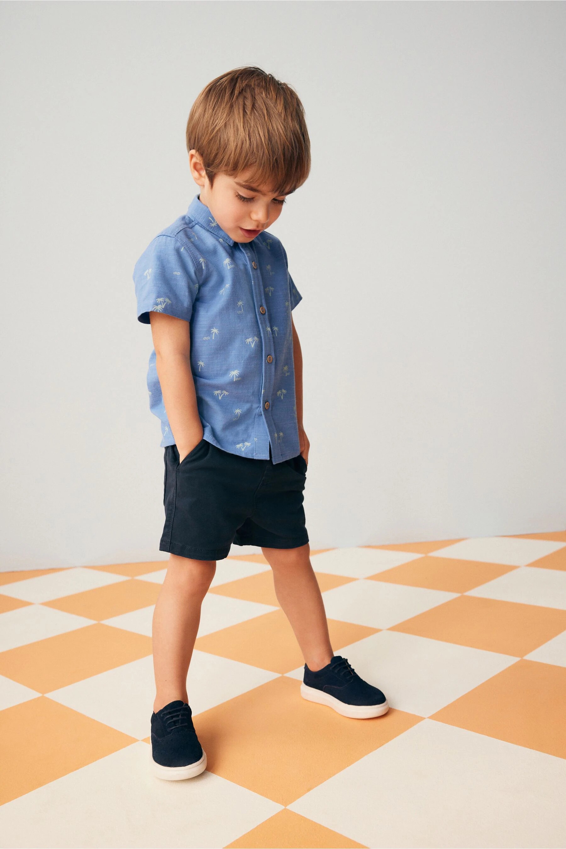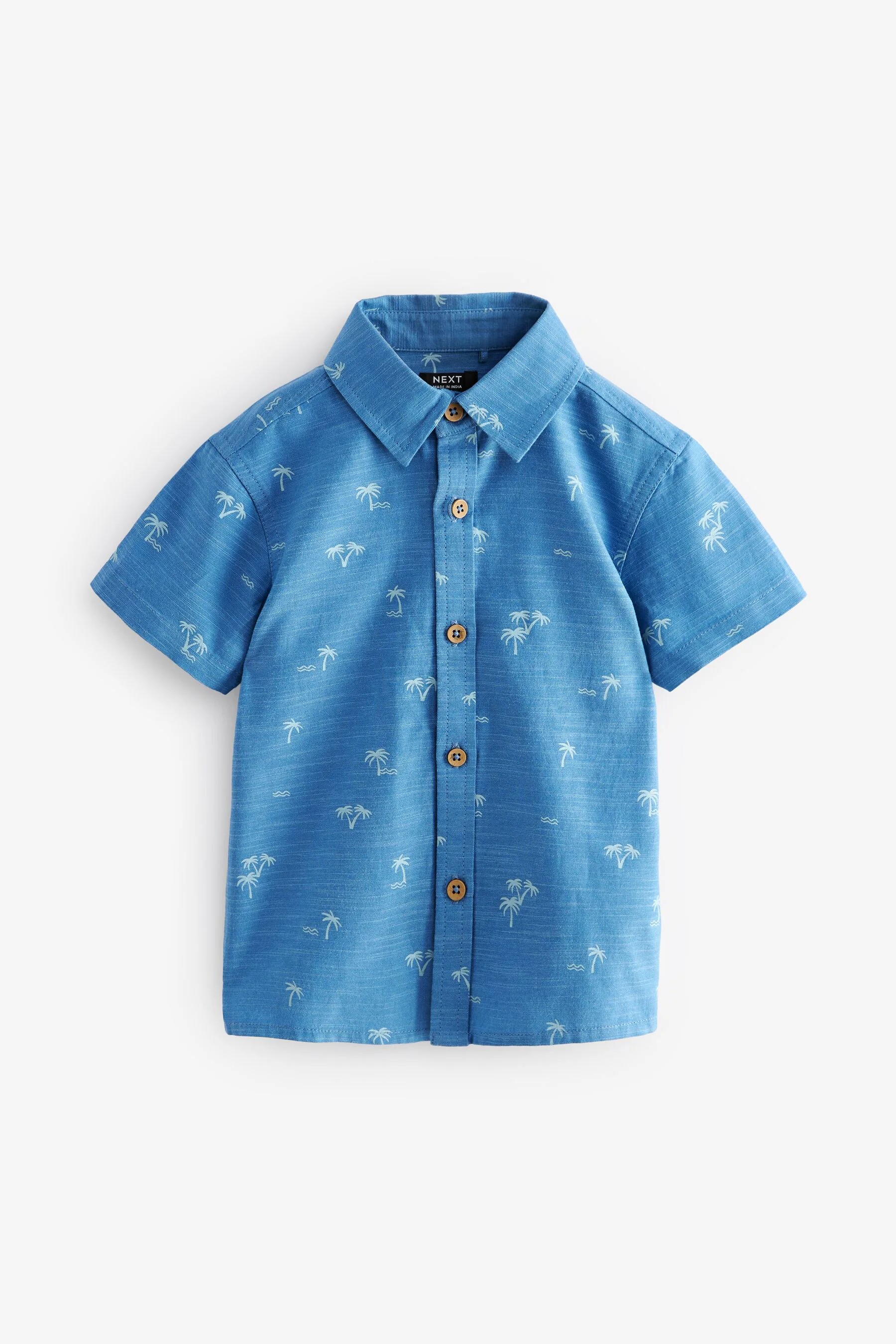 现货英国Next童装正品夏男童宝宝棉蓝色翻领印花帅气英伦短袖衬衫