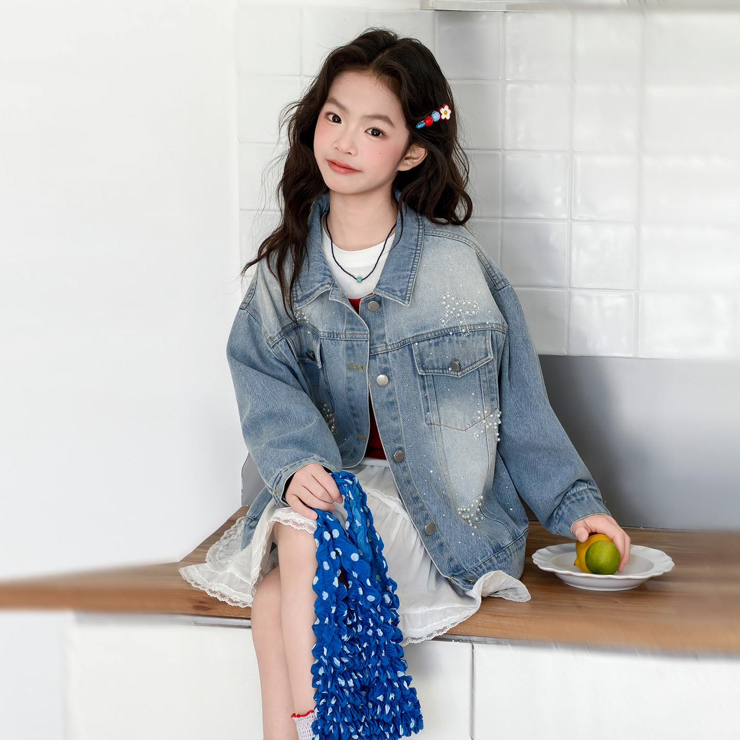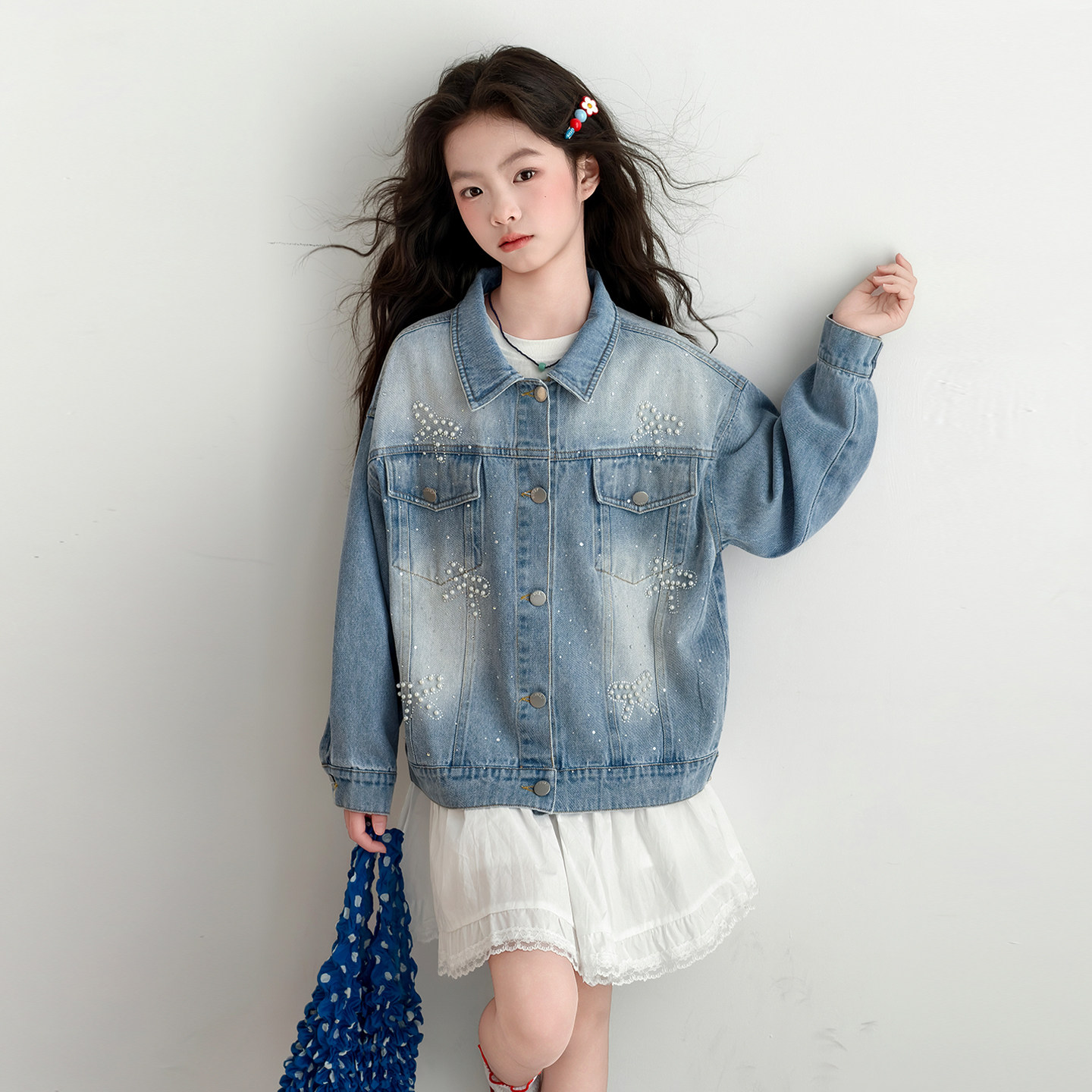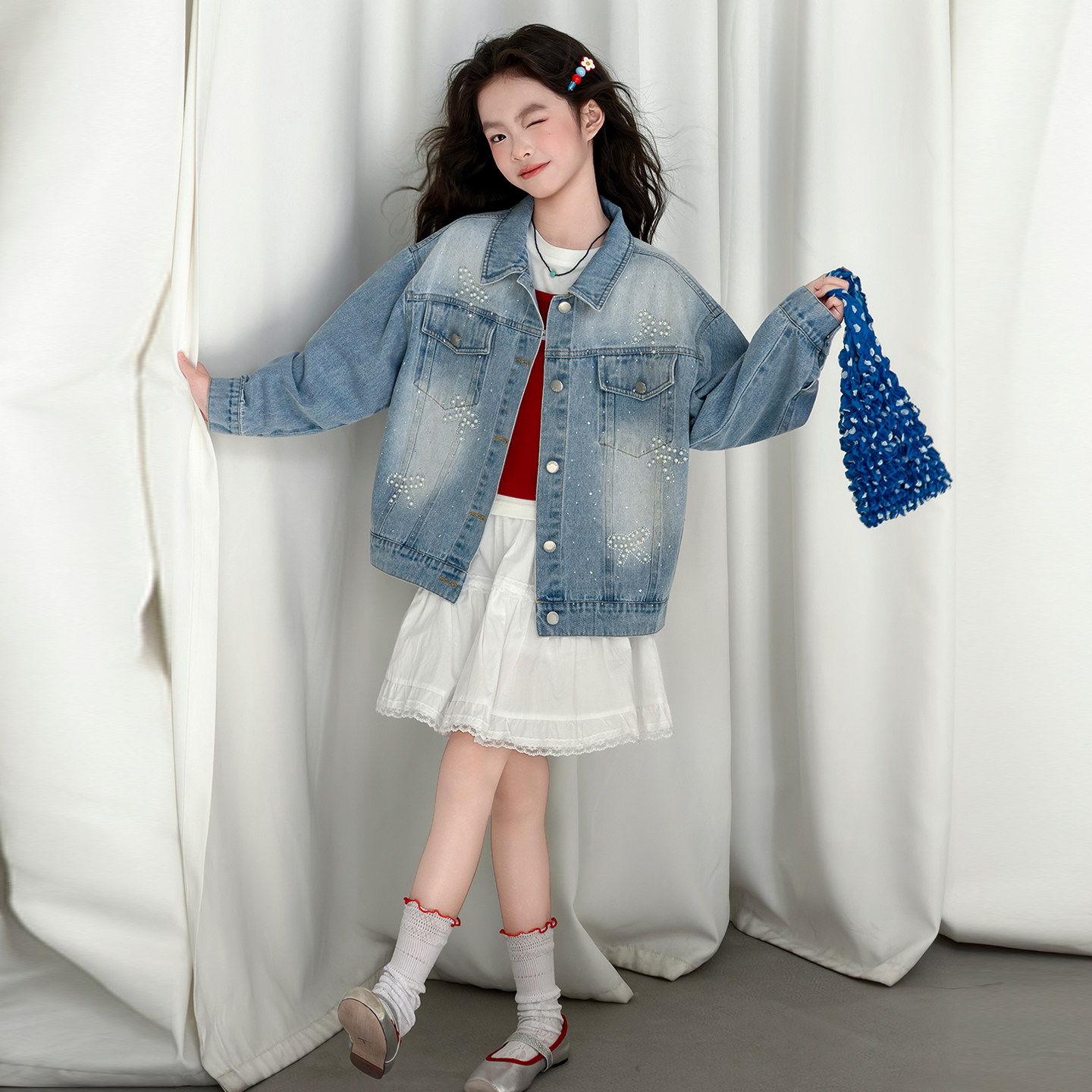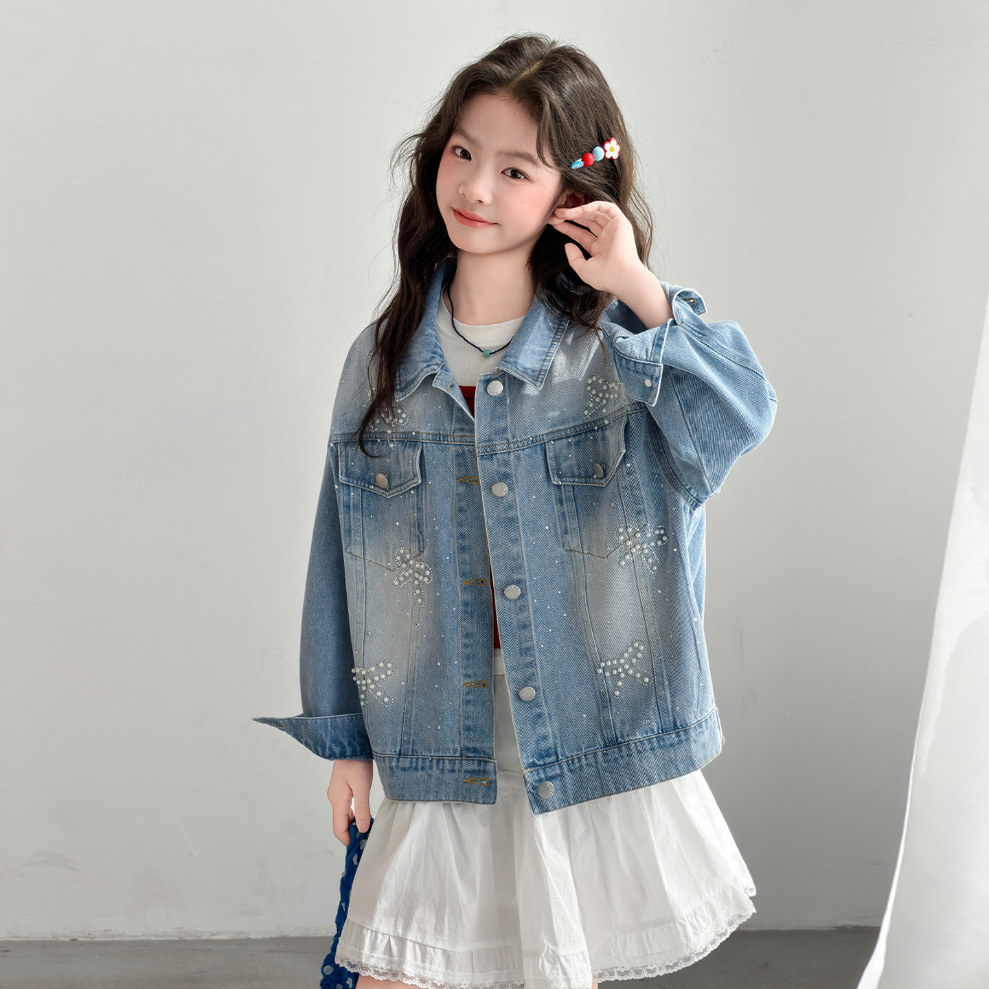 女童2026春装新款超好看烫钻牛仔外套女大童韩系洋气儿童休闲上衣