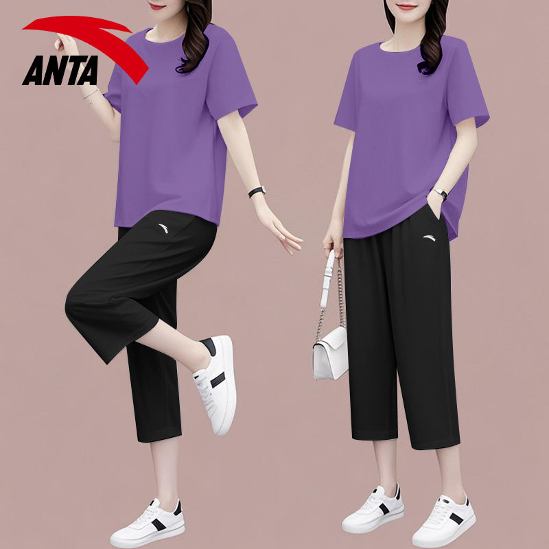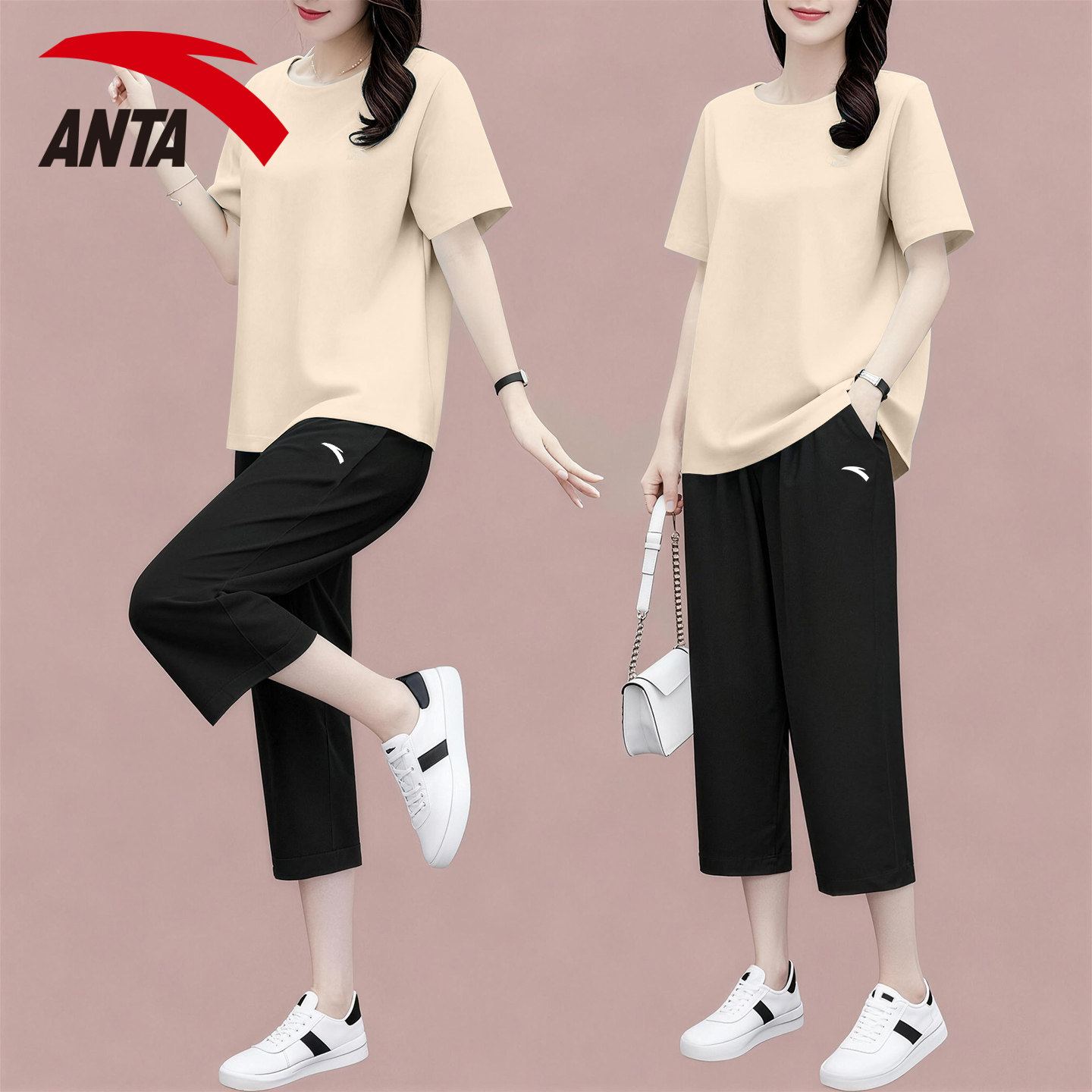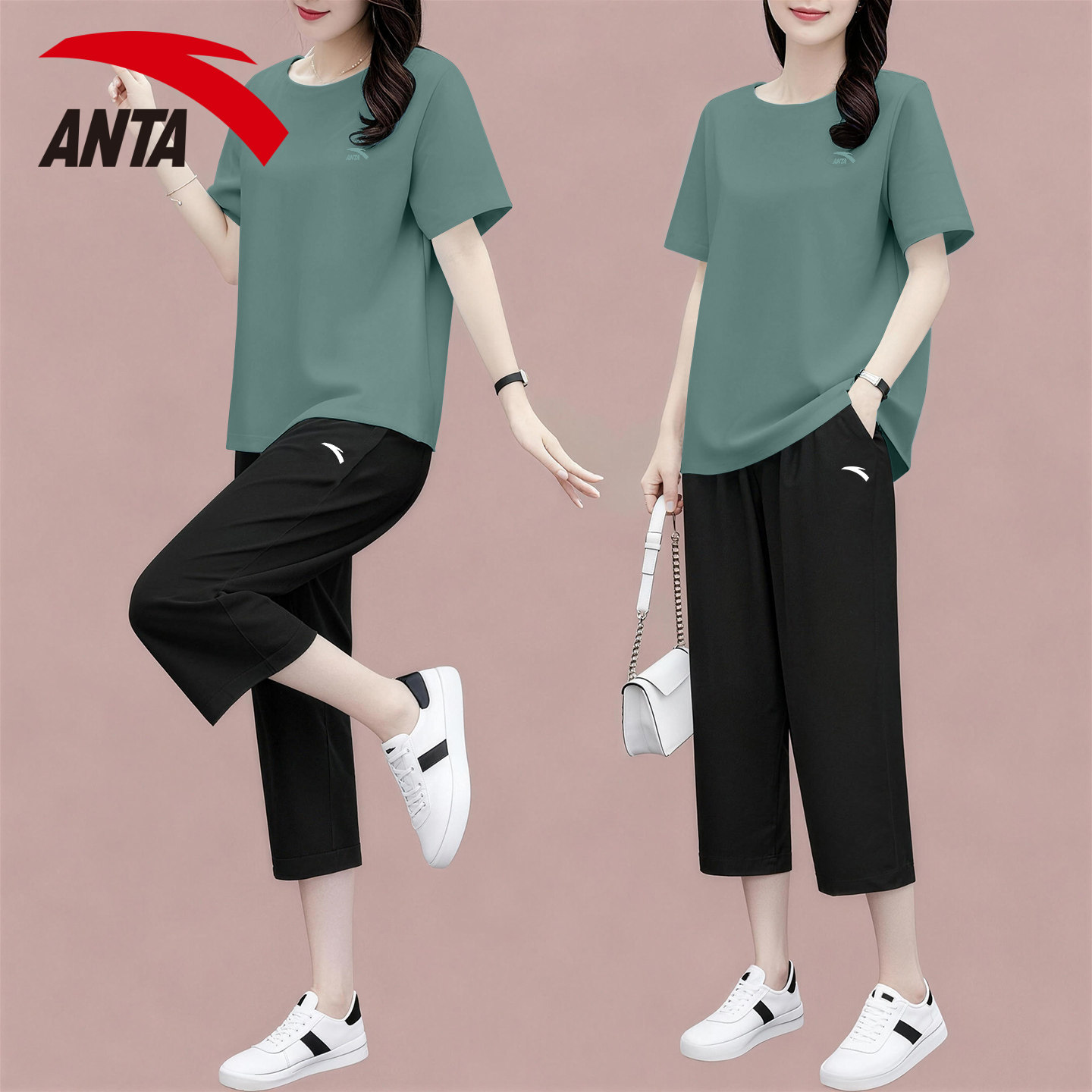安踏夏季短袖休闲套装女2026新款女士妈妈洋气时尚宽松运动两件套