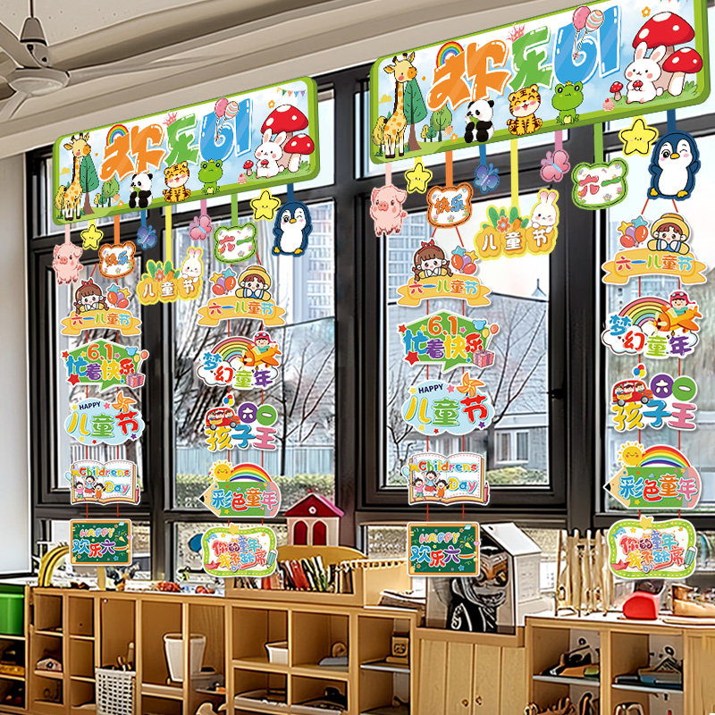 六一儿童节窗户教室班级场景布置装饰挂饰演出小学幼儿园仪式感61