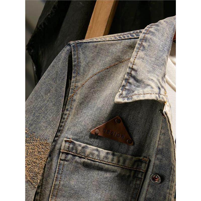 美式复古牛仔外套男款2026新款春季大码水洗做旧潮牌工装夹克上衣