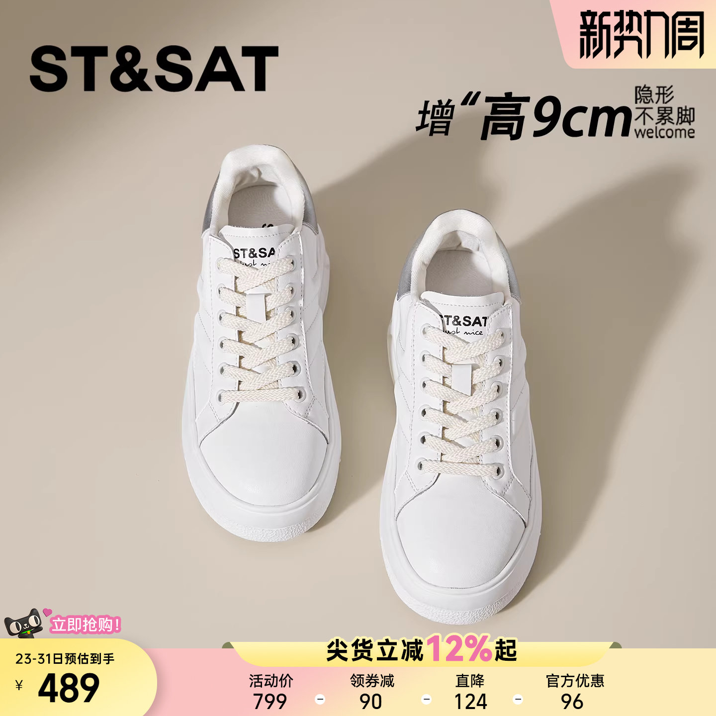 星期六9CM隐形内增高小白鞋女款百搭休闲松糕鞋子小个子增高板鞋