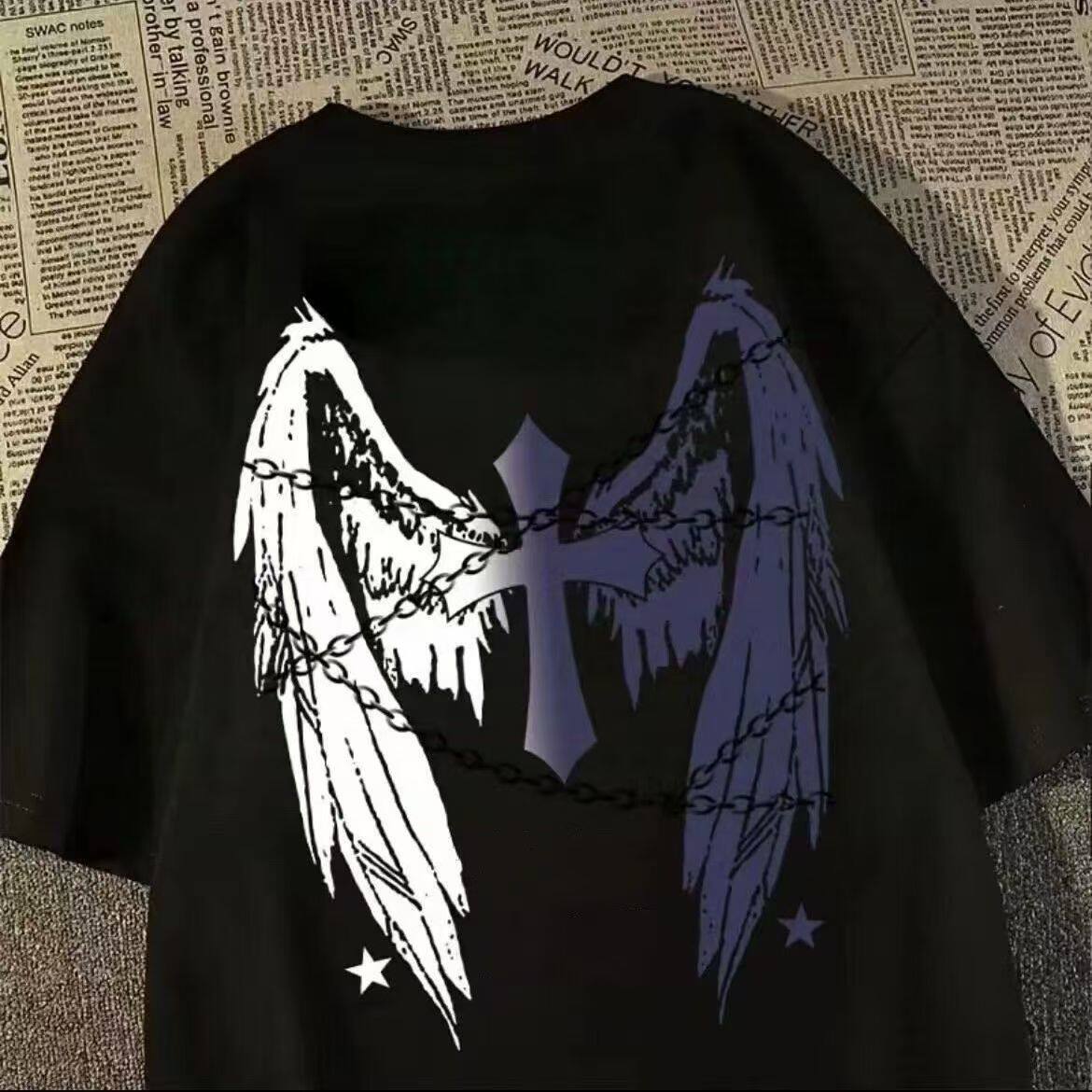 男童夏季痞帅风印花纯棉短袖T恤2026新款中大童男孩宽松半袖上衣