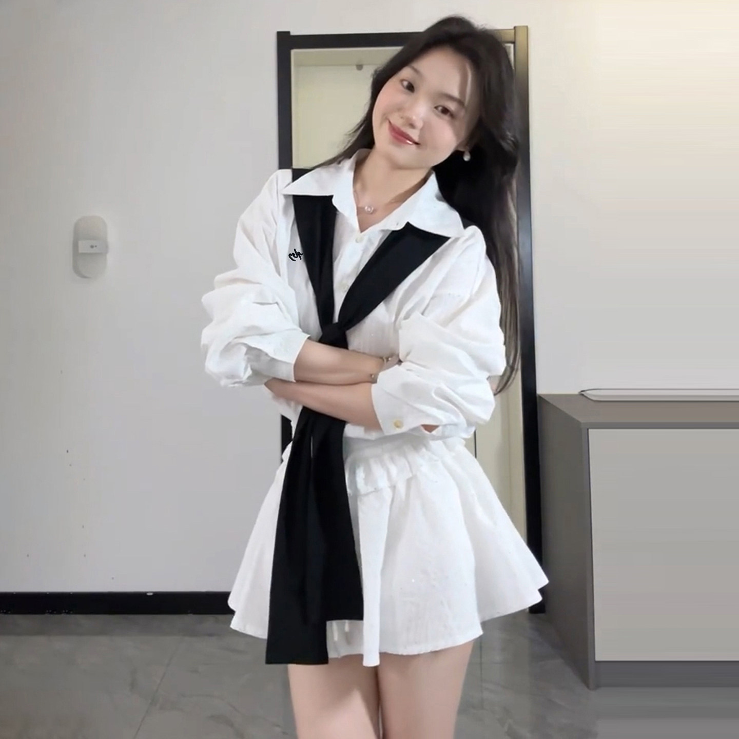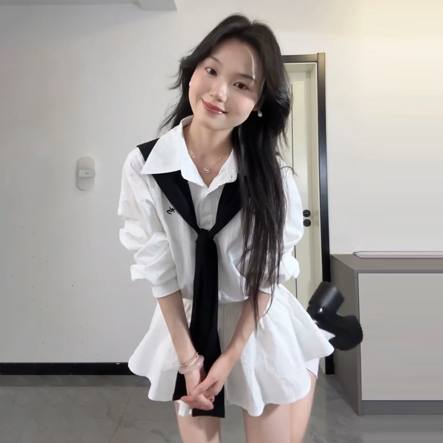2026新款韩系巨好看白色衬衫连衣裙子女早春小个子穿搭短裙套装