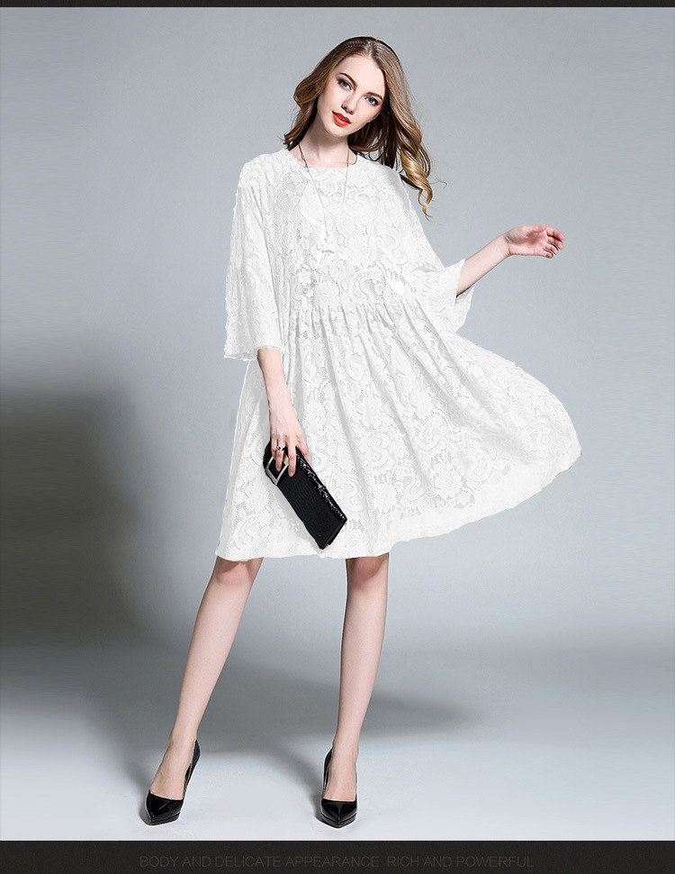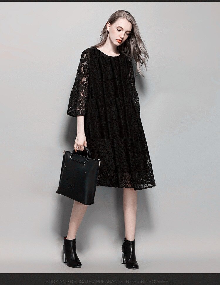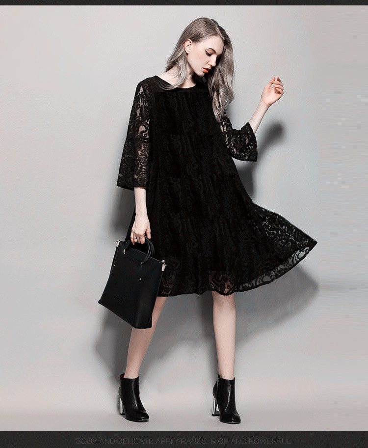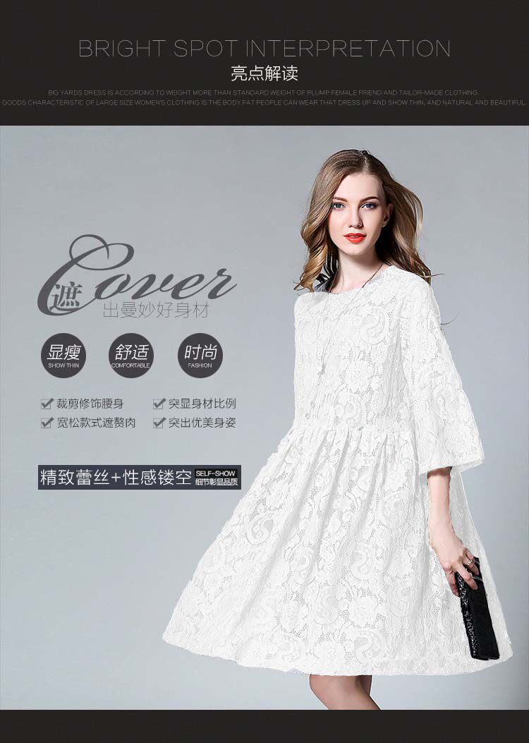 欧洲站春秋夏季款蕾丝连衣裙子女大码胖mm长袖韩版大码宽松打底裙