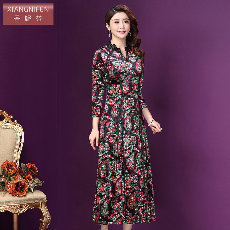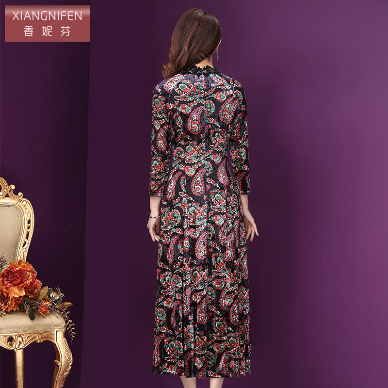 311线报网描述:秋冬新款 印花连衣裙 洋气阔太太