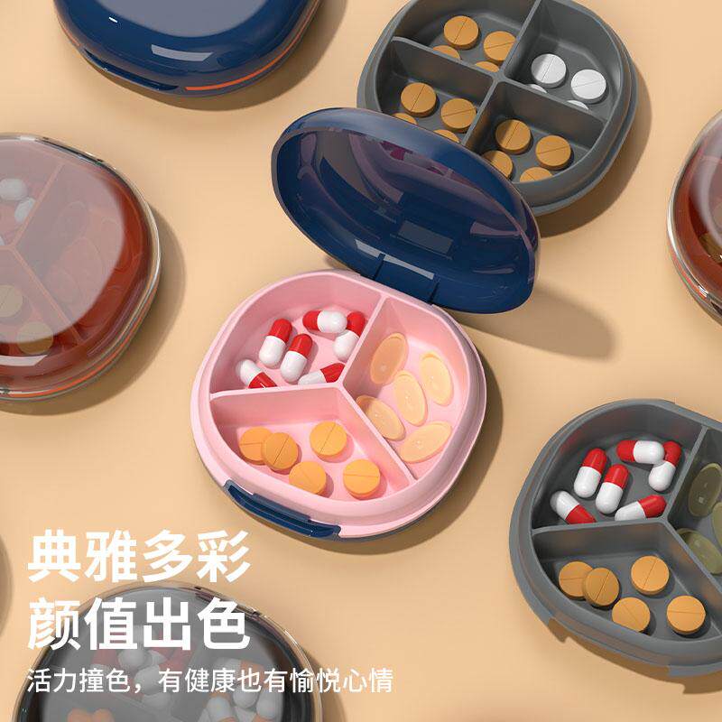 便携式药盒随身分装小药盒密封圆形四格药盒迷你药品收纳盒