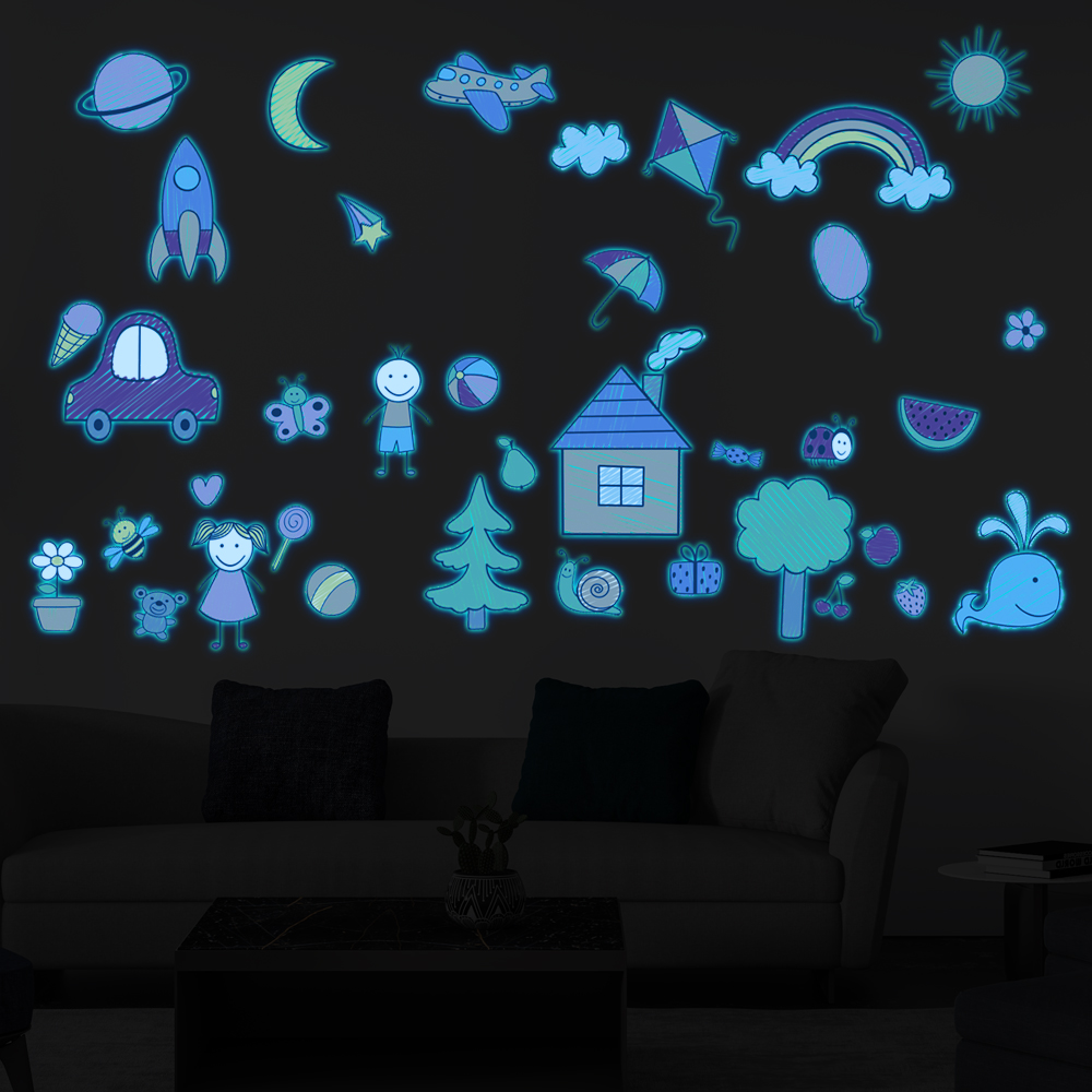 卡通夜光贴纸儿童房发光贴画小孩房间卧室荧光墙贴自粘装饰榻榻米
