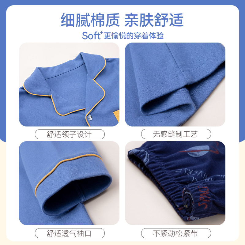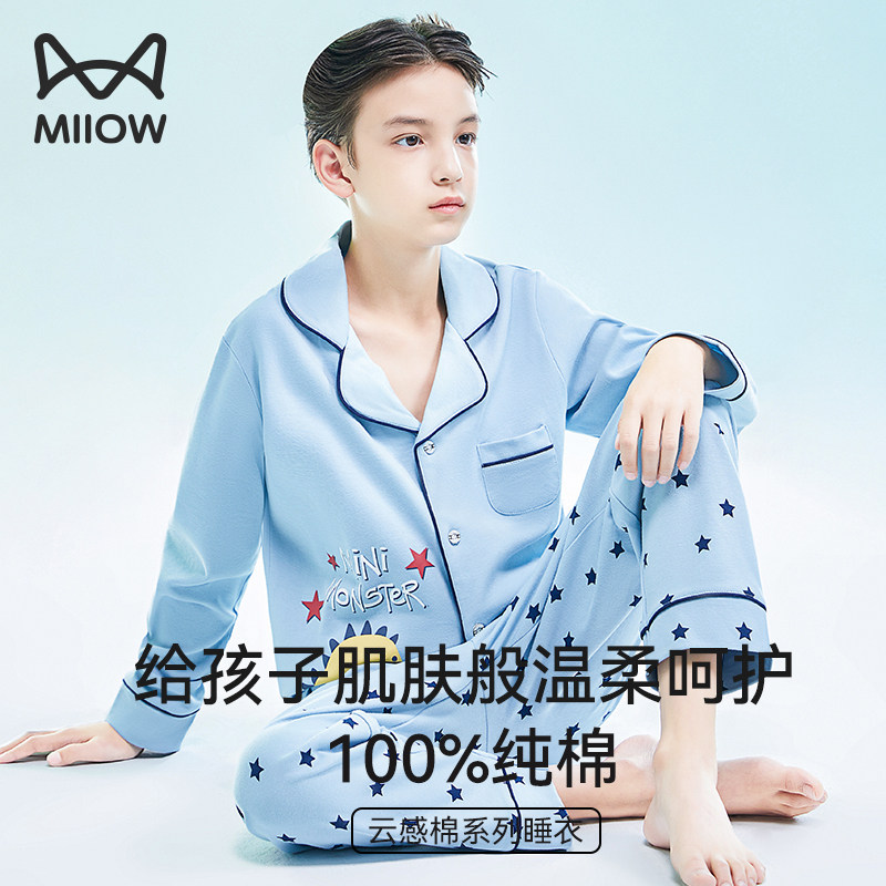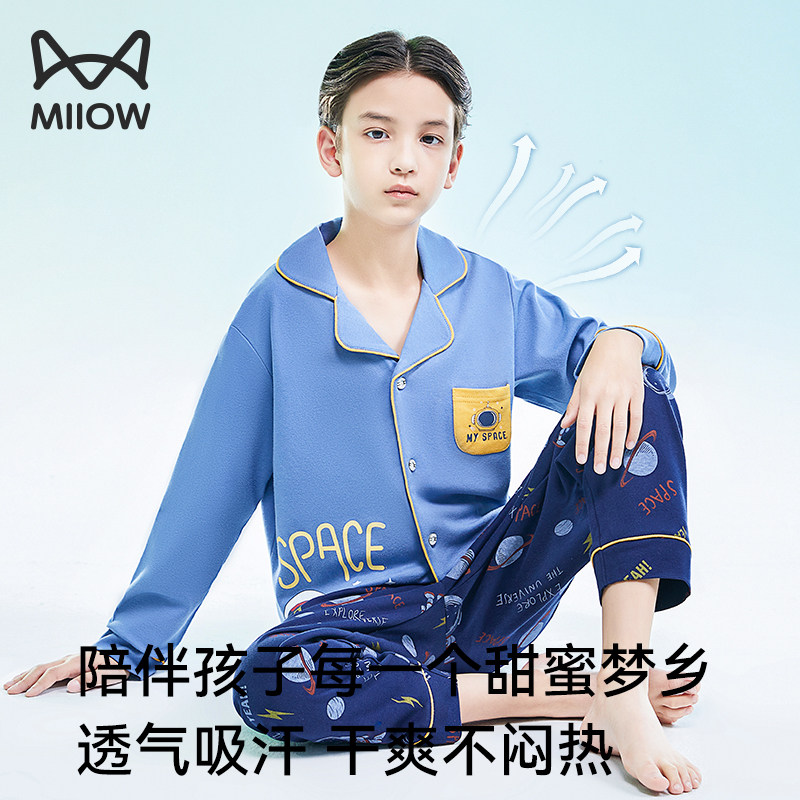 猫人男童睡衣儿童春秋长袖纯棉套装大童青少年男孩家居服2026新款