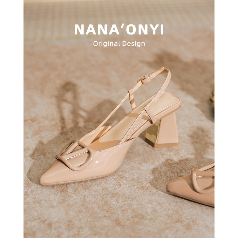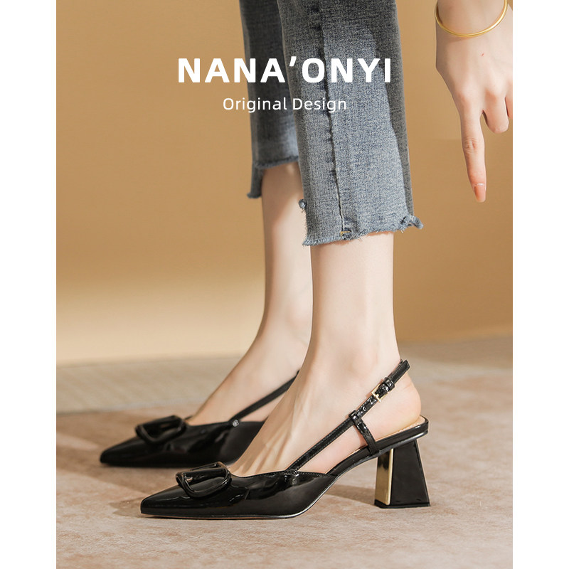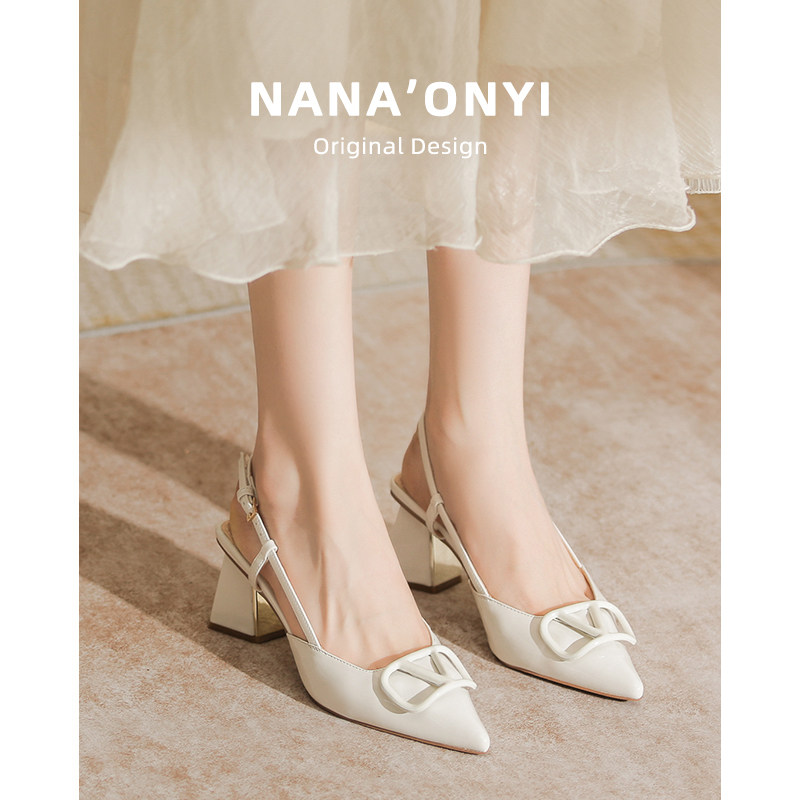 包头凉鞋女夏季2026年新款外穿仙女风法式真皮粗跟尖头斩男高跟鞋