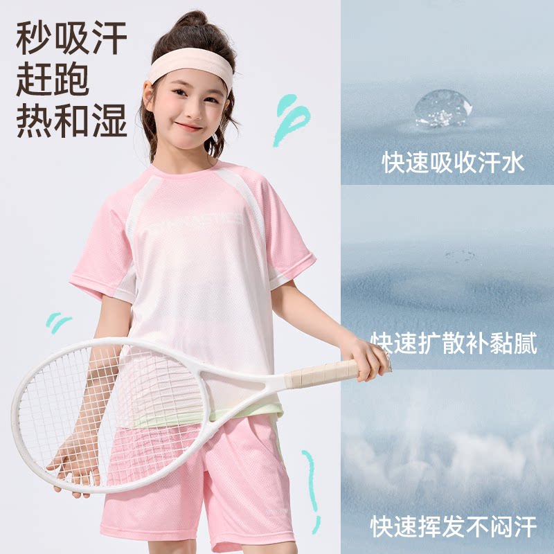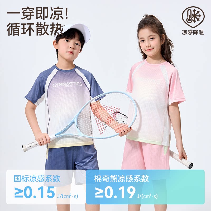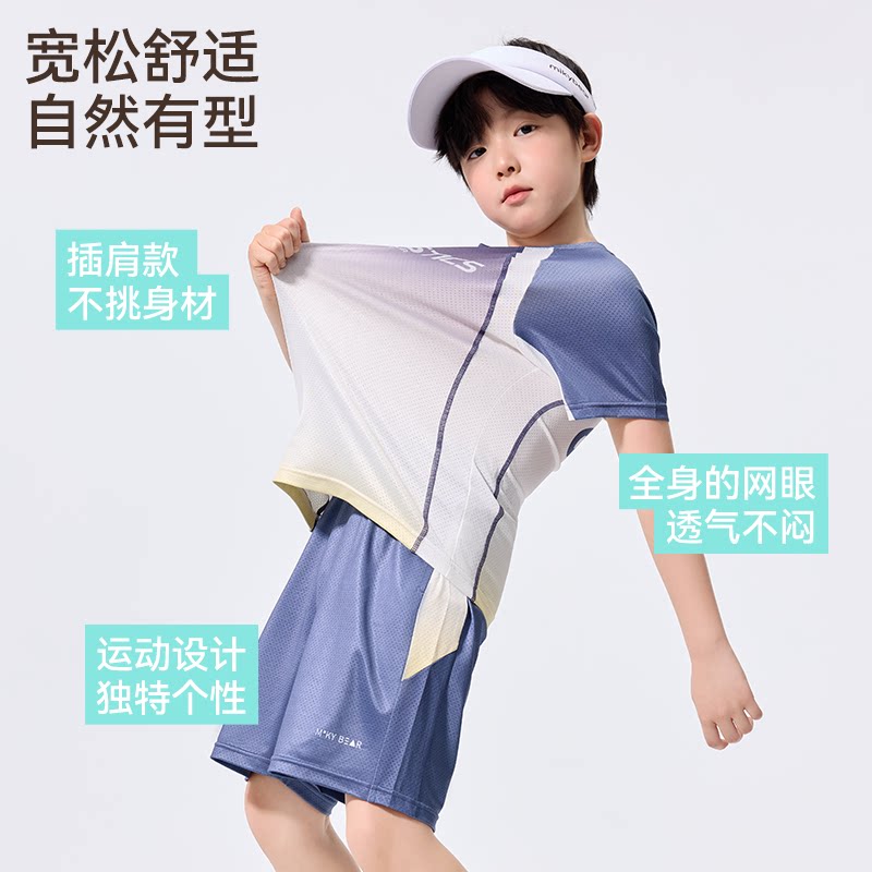 男童速干运动套装儿童冰丝凉感篮球服中大童跑步羽毛球训练短袖T