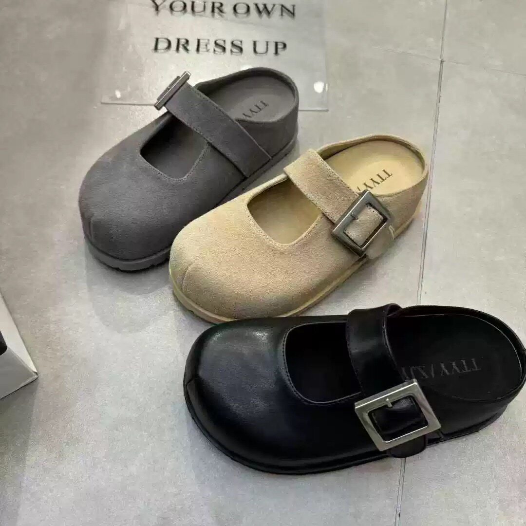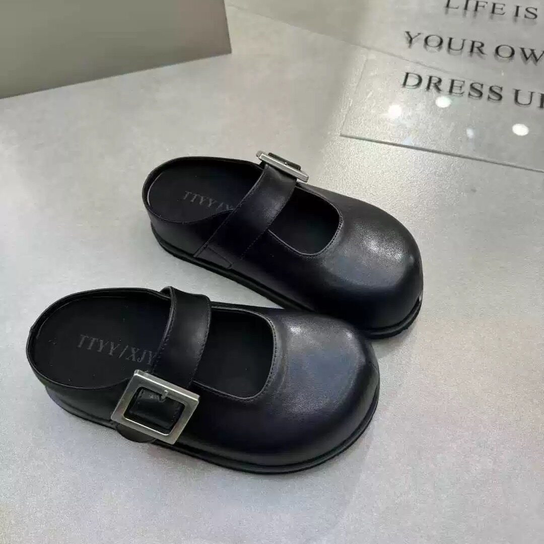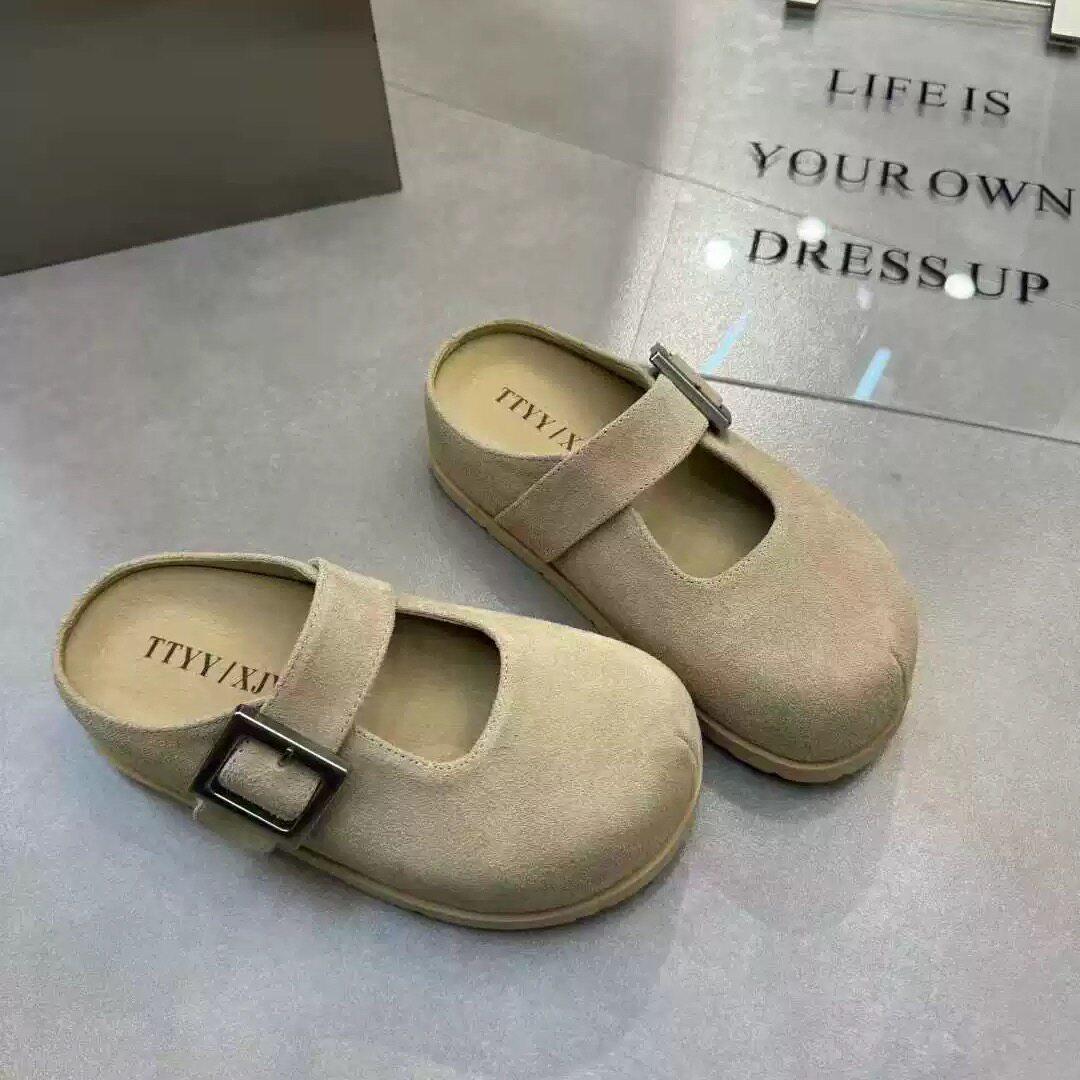 TTYY卡皮巴拉2026春季新款真皮厚底内增高勃肯鞋单鞋女鞋包头拖鞋
