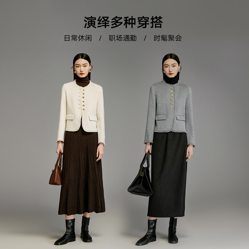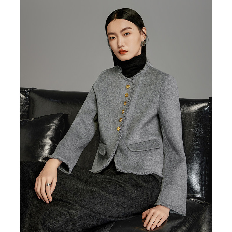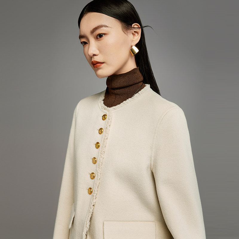 100%羊毛双面呢大衣女短款MOFAN摩凡春秋新款杏米色毛呢外套