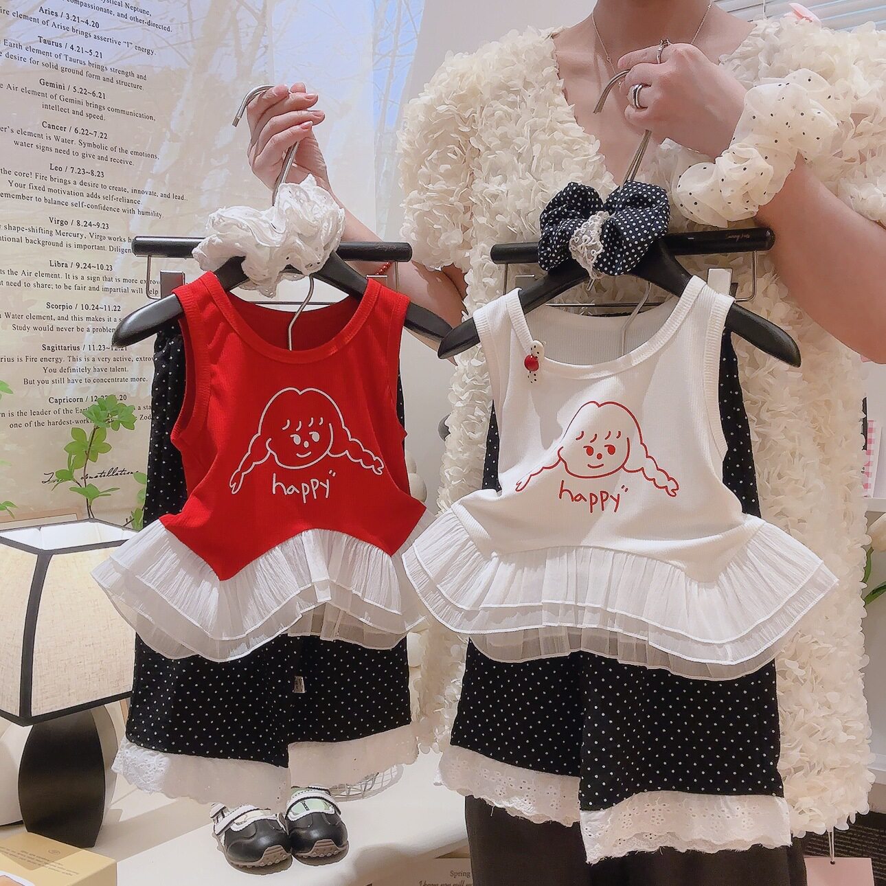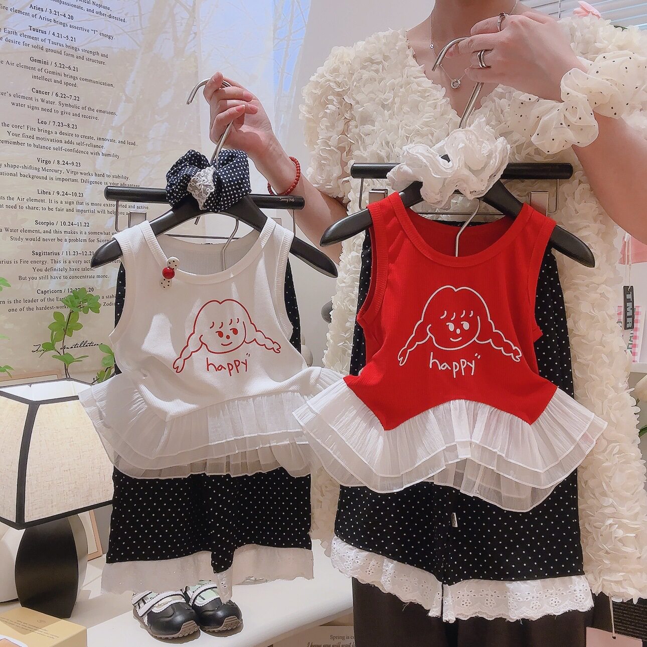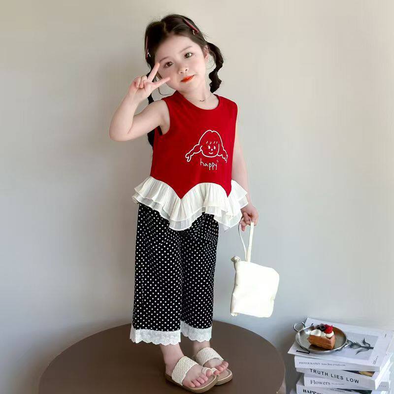 女童夏季套装莫代尔背心薄款夏季女波点韩版套装夏装女宝可爱上衣