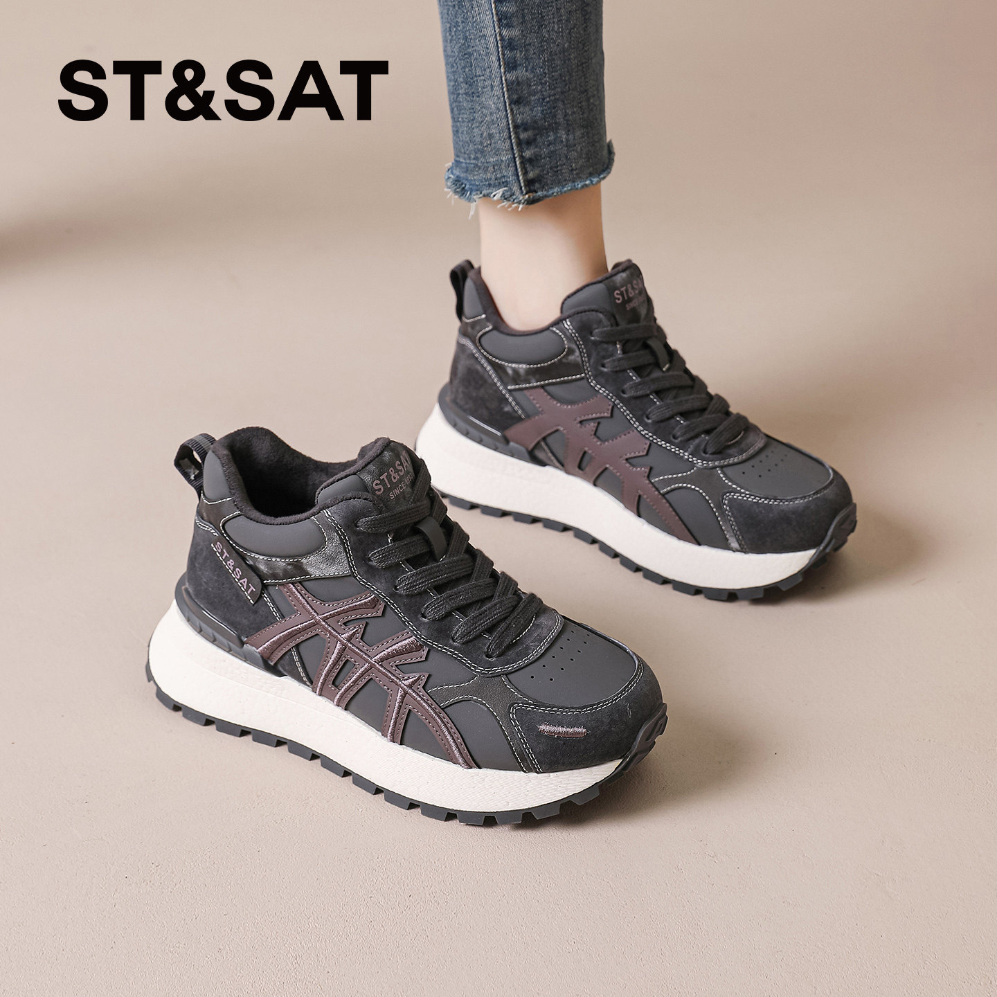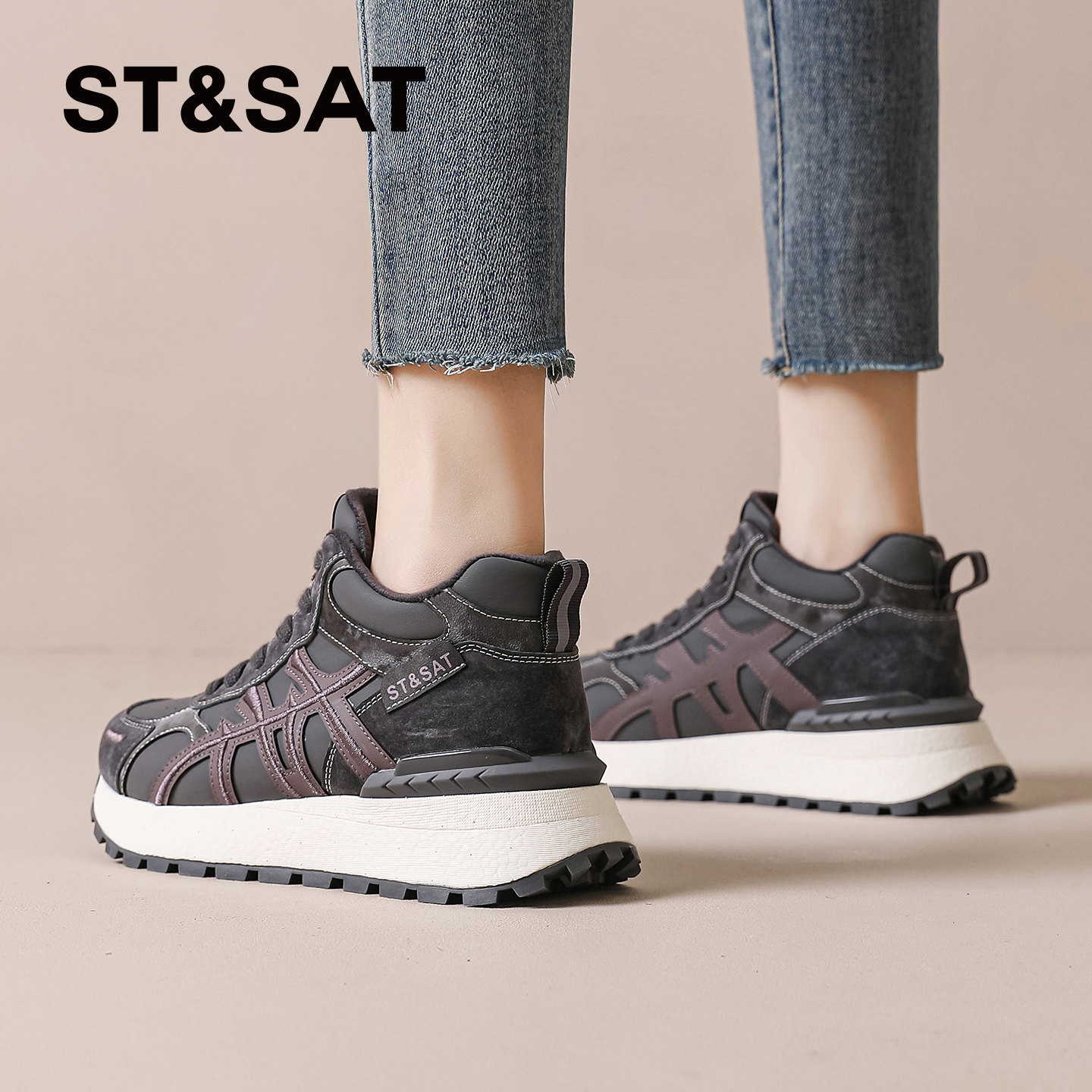 星期六女鞋冬季高帮加绒德训鞋女款2025新款爆款二棉运动鞋棉鞋女