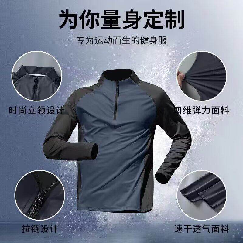半拉链训练服男速干衣长袖春夏季体育生田径运动跑步t恤健身上衣T