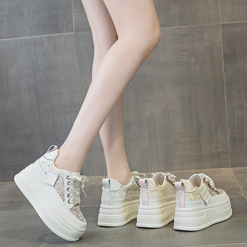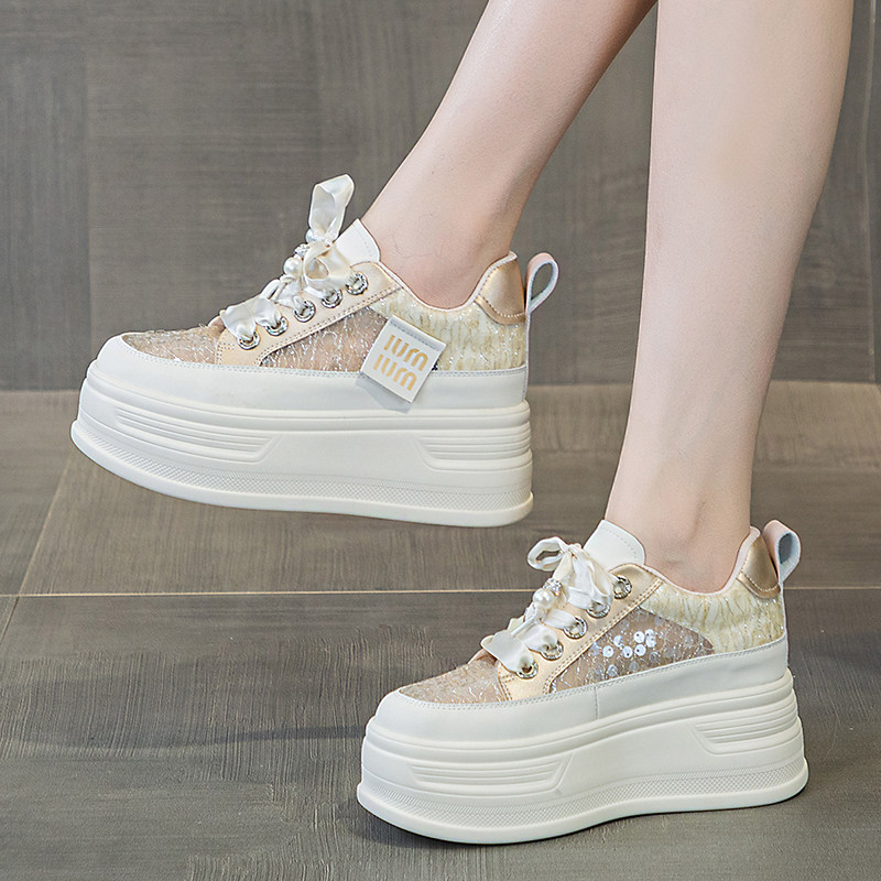 厚底小白鞋女2026夏季新款网面透气薄款配裙子百搭内增高休闲板鞋