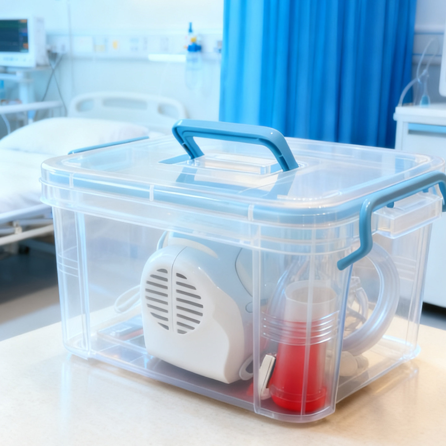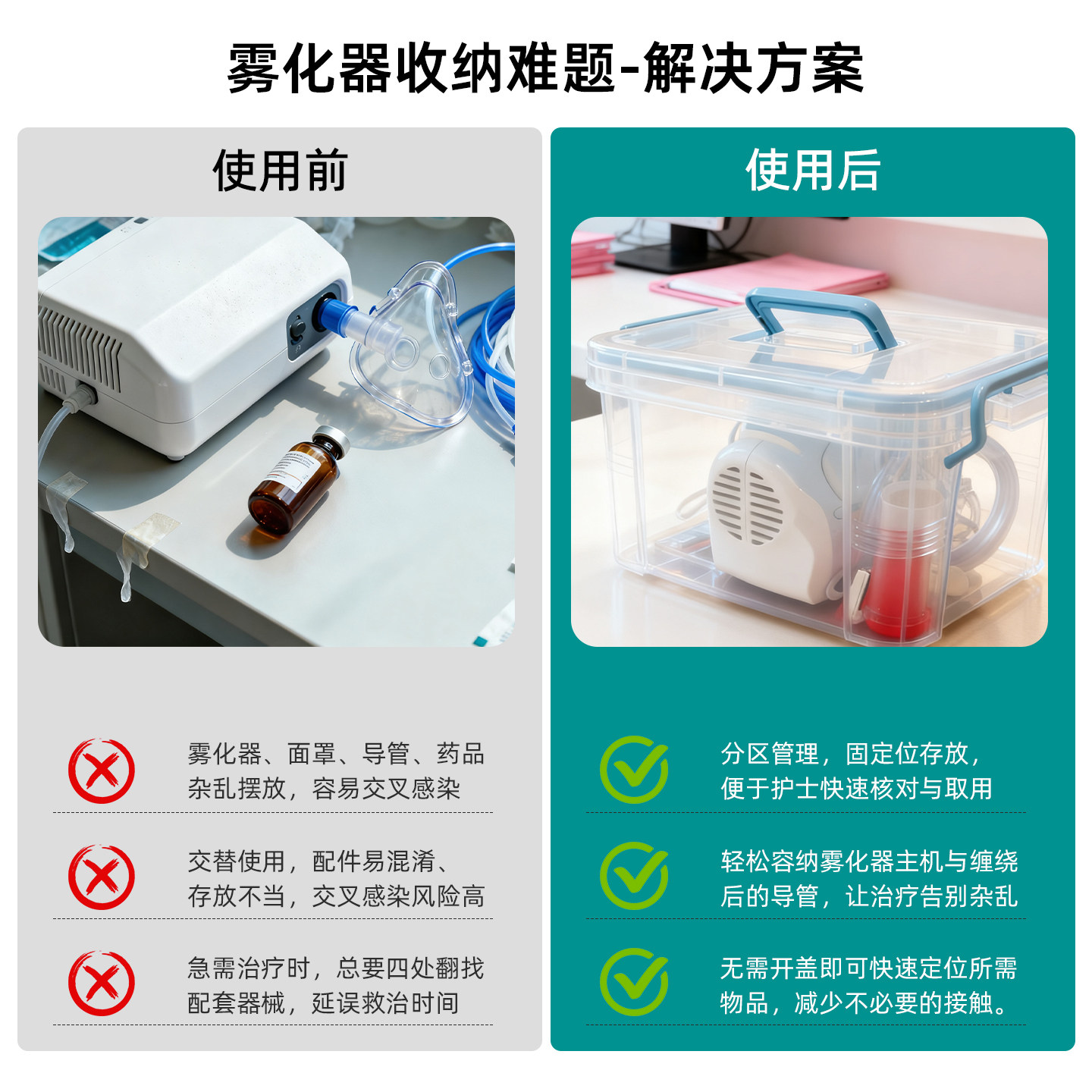 思蜀邦护医院儿科雾化器收纳箱家用雾化机面罩透明带盖防尘收纳