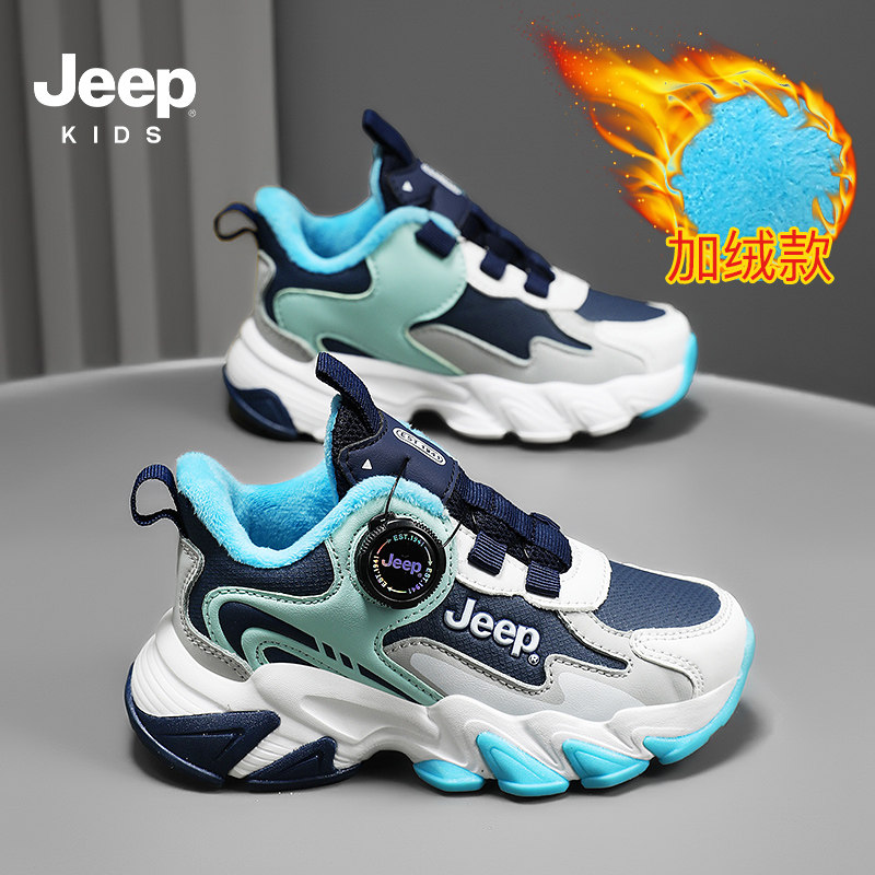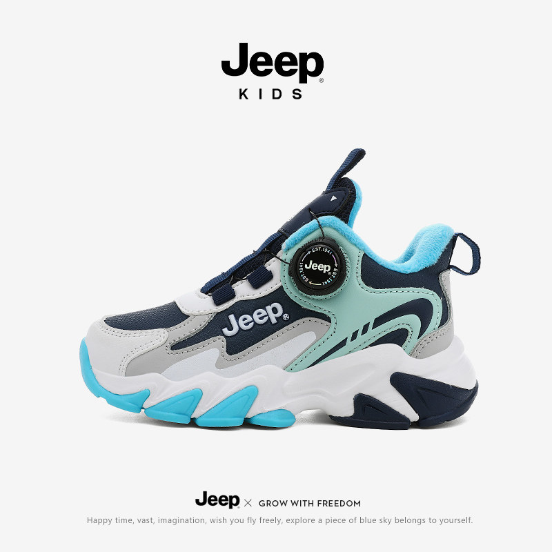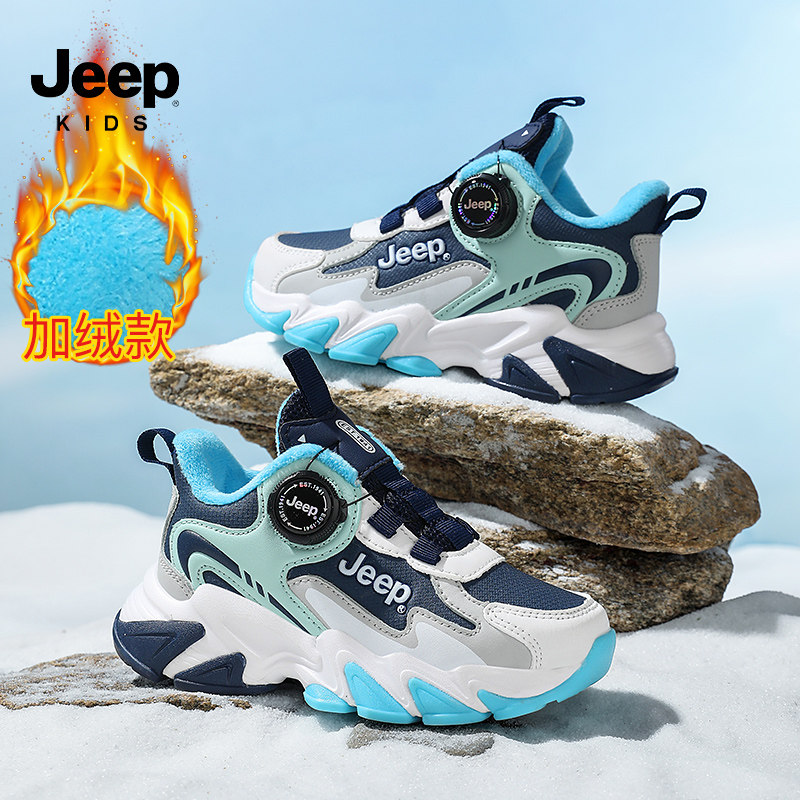 Jeep男童鞋秋冬加绒保暖二棉鞋2025新款儿童舒适旋钮运动鞋男生鞋
