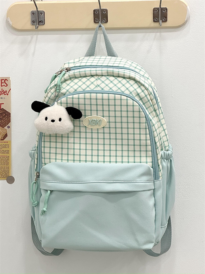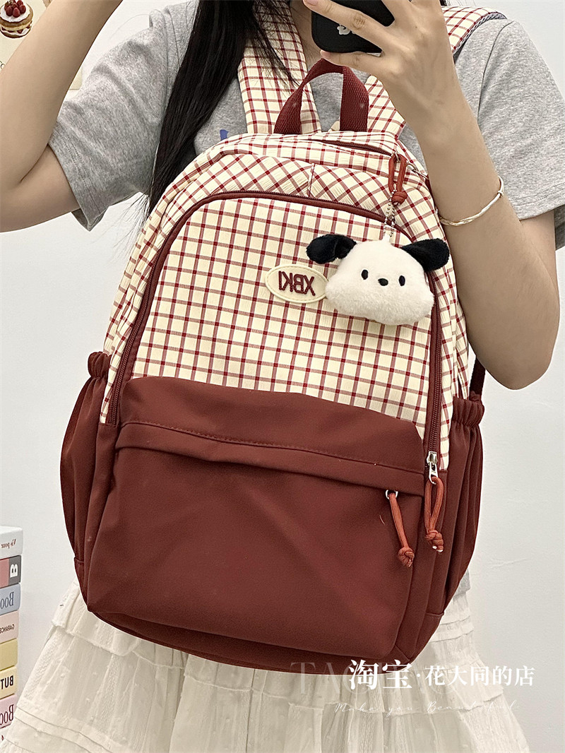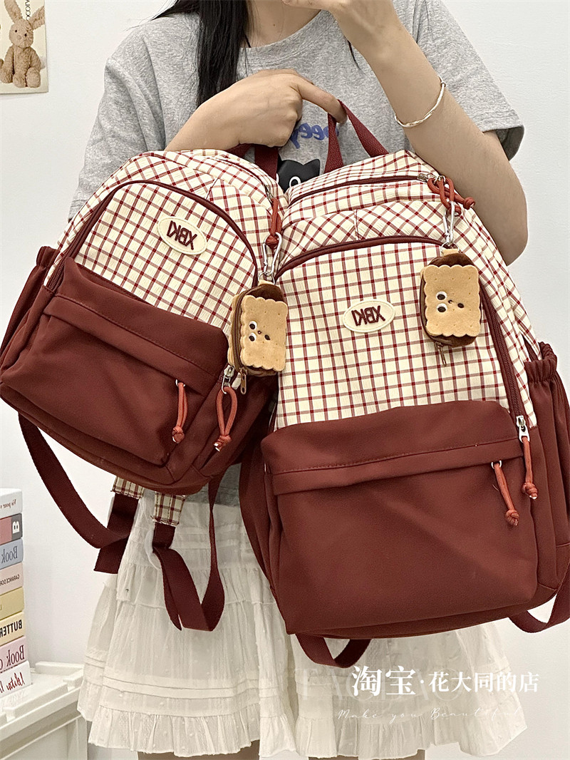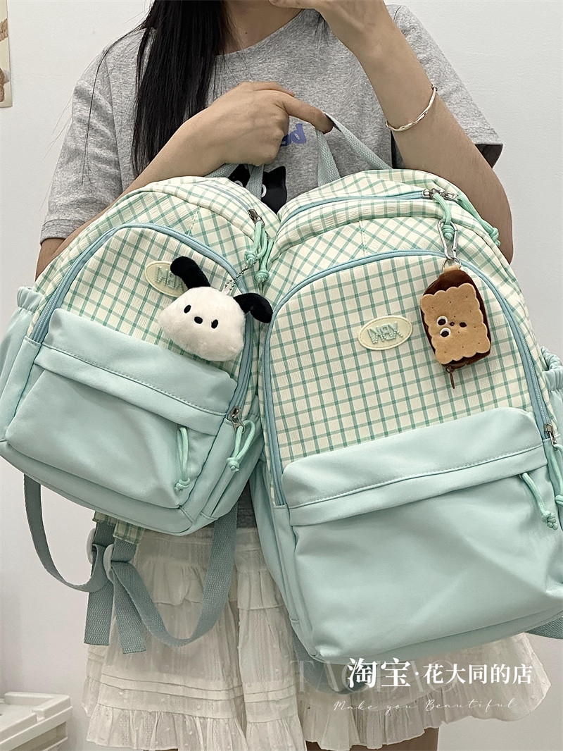 书包女高中学生韩版百搭格子学院风初中生大容量多层双肩包小背包