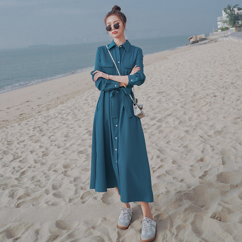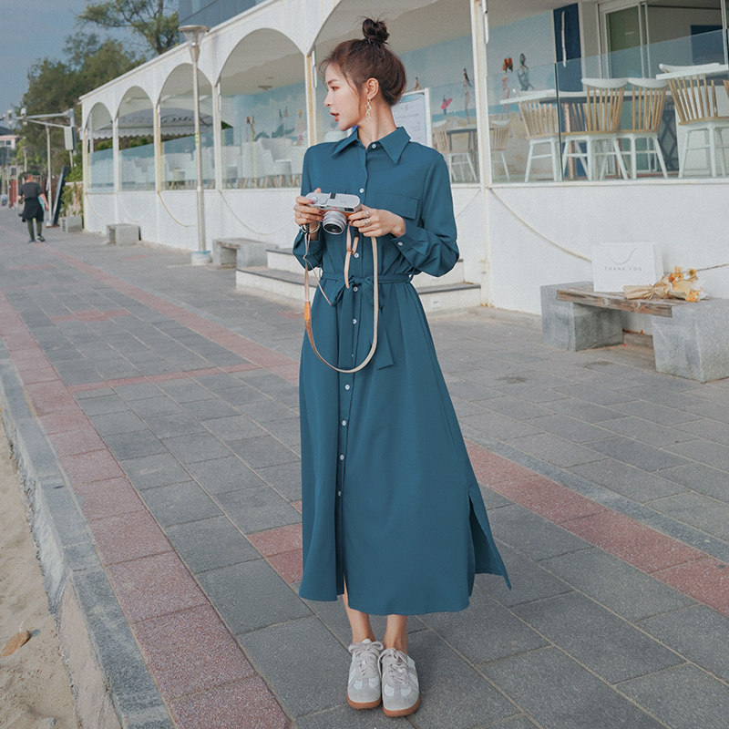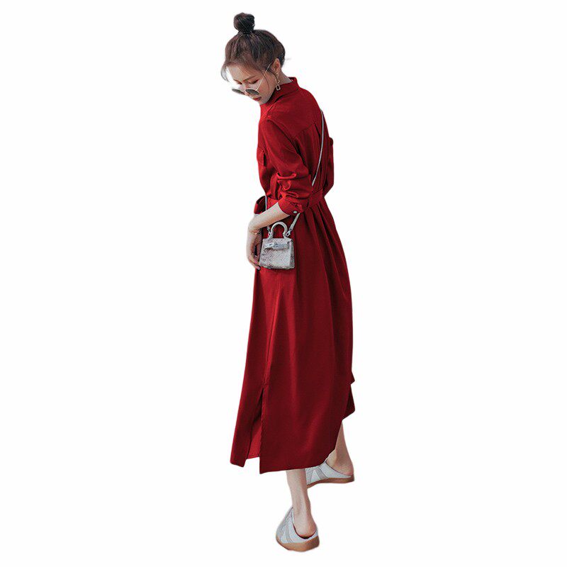红色茶歇法式连衣裙长裙到脚踝衬衣裙新娘裙子回门装伴娘裙子宽松