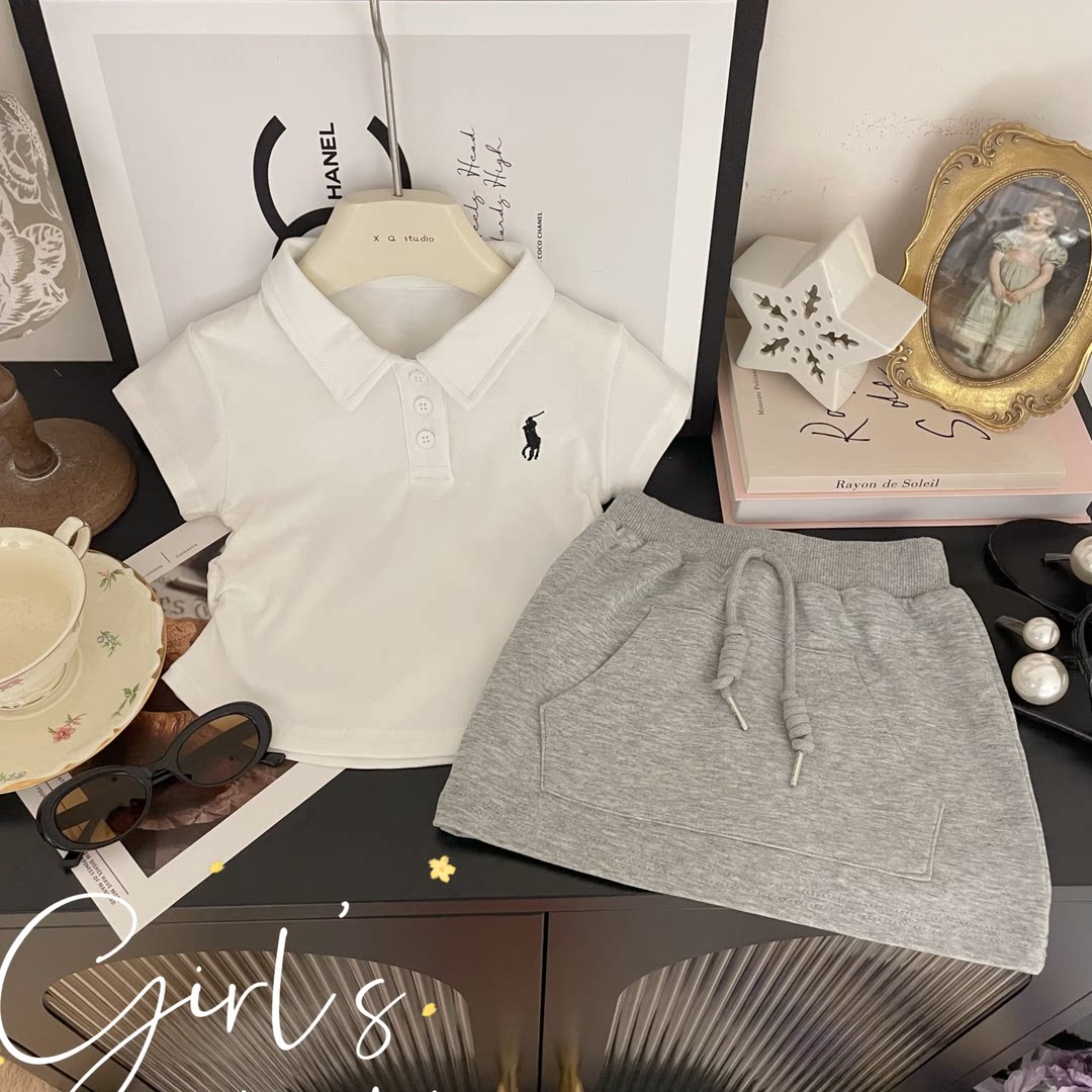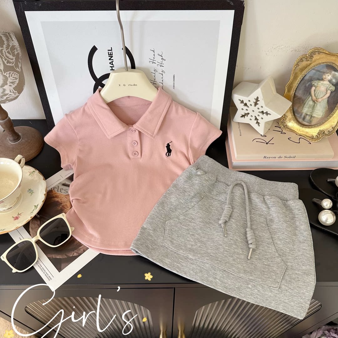 女童夏装韩版半身裙套装女宝宝时髦polo衫T恤裙子儿童装两件套潮