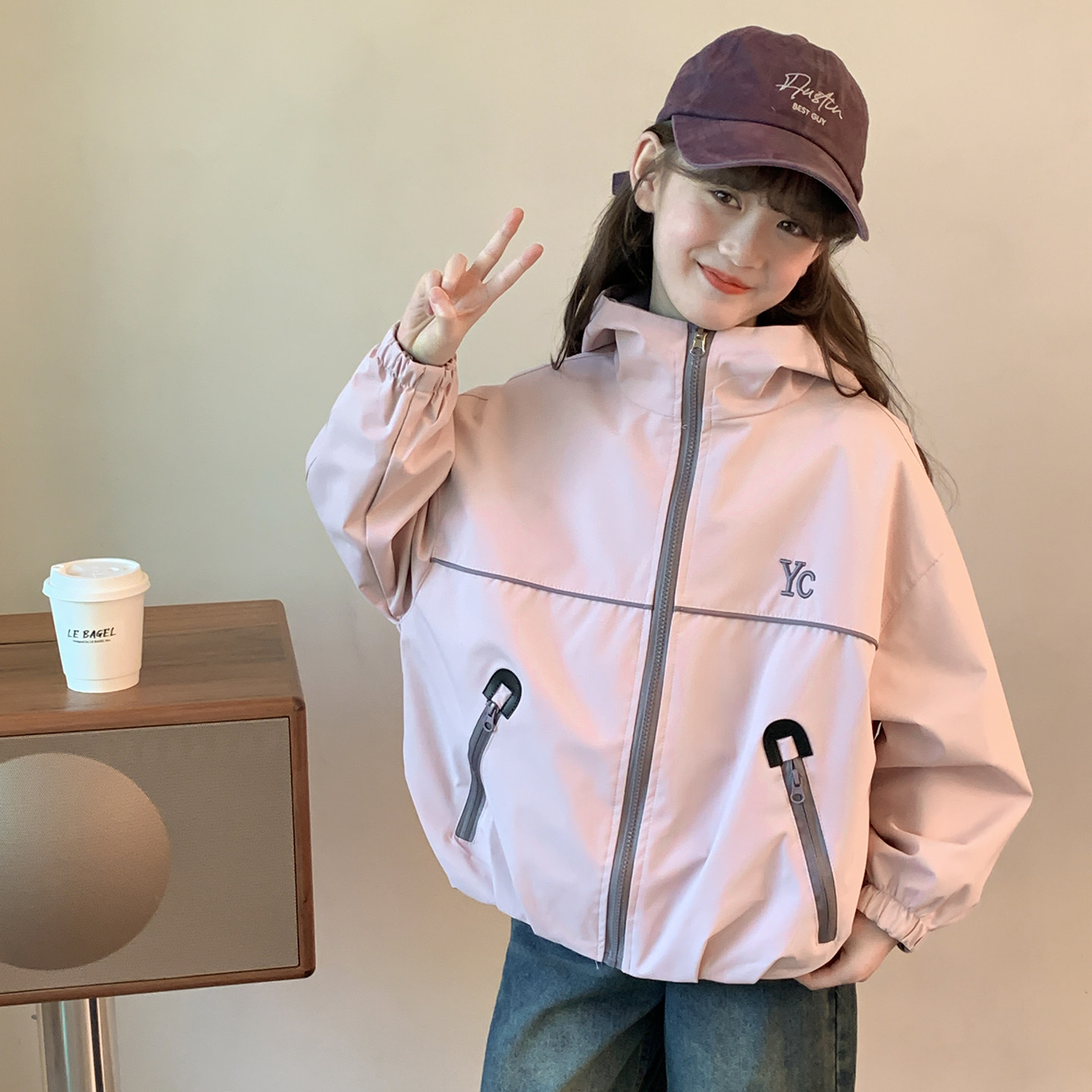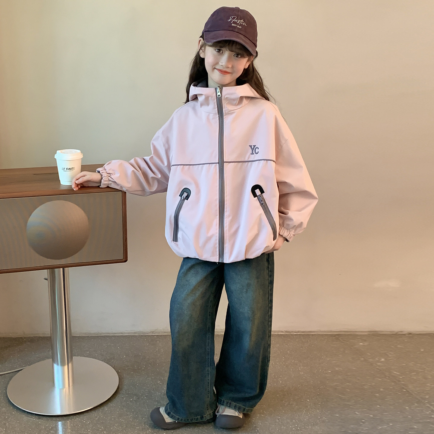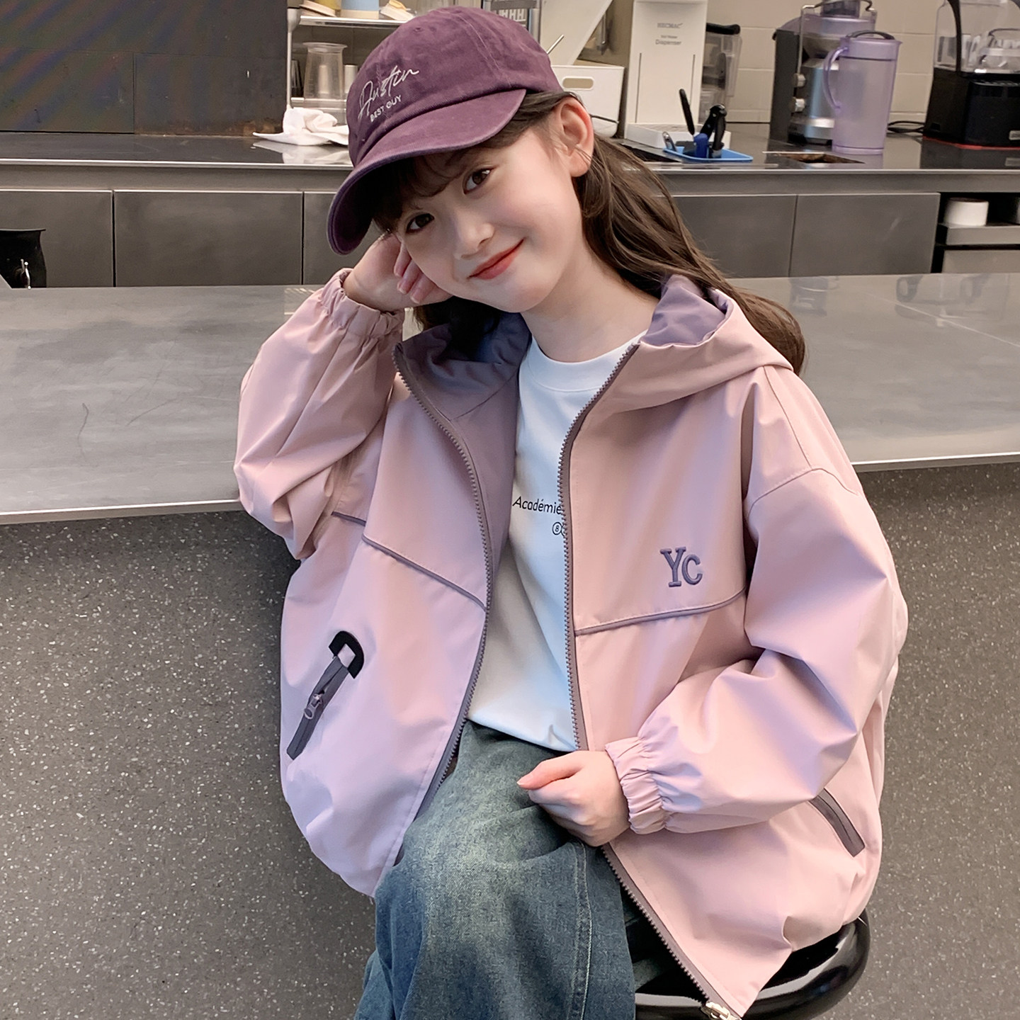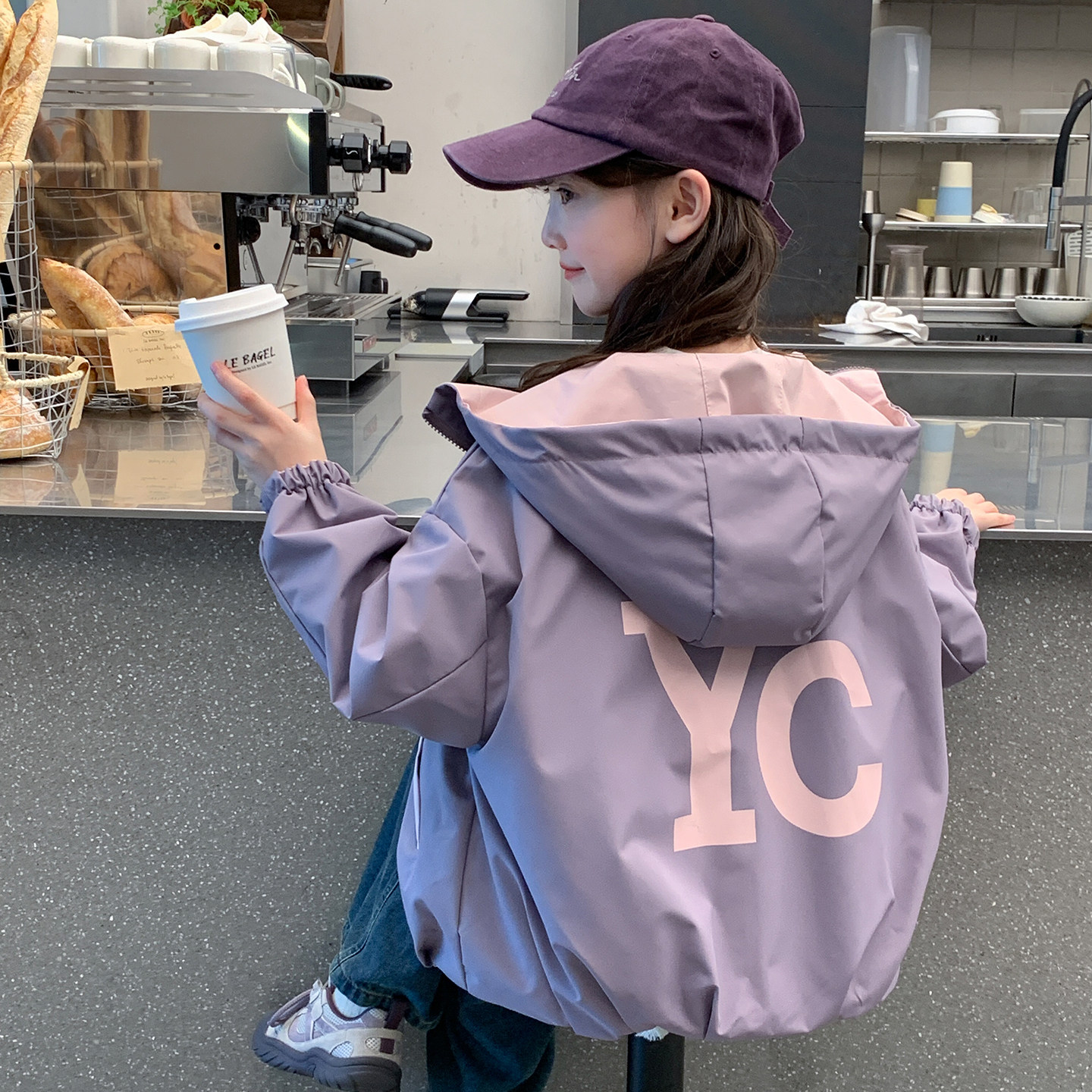 女童春装户外两面穿连帽冲锋衣2026春秋新款中大童百搭外套初中生