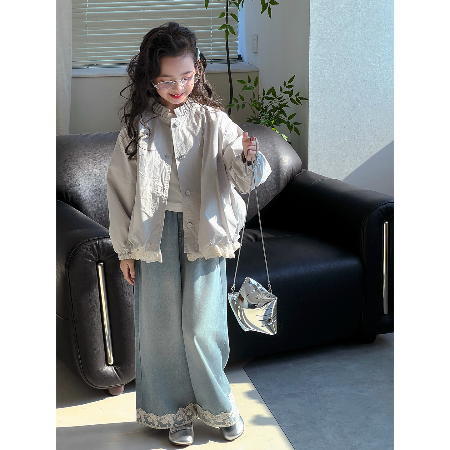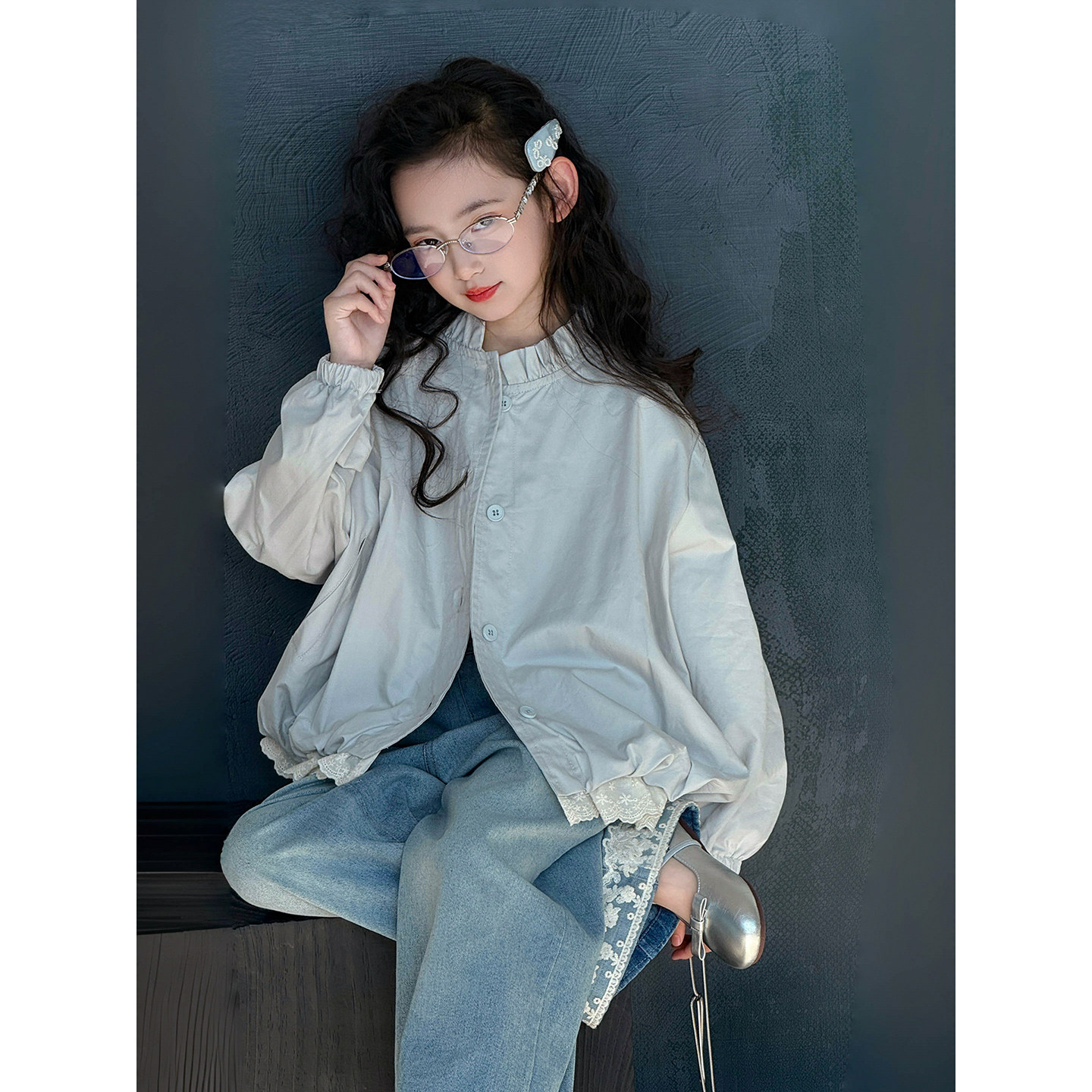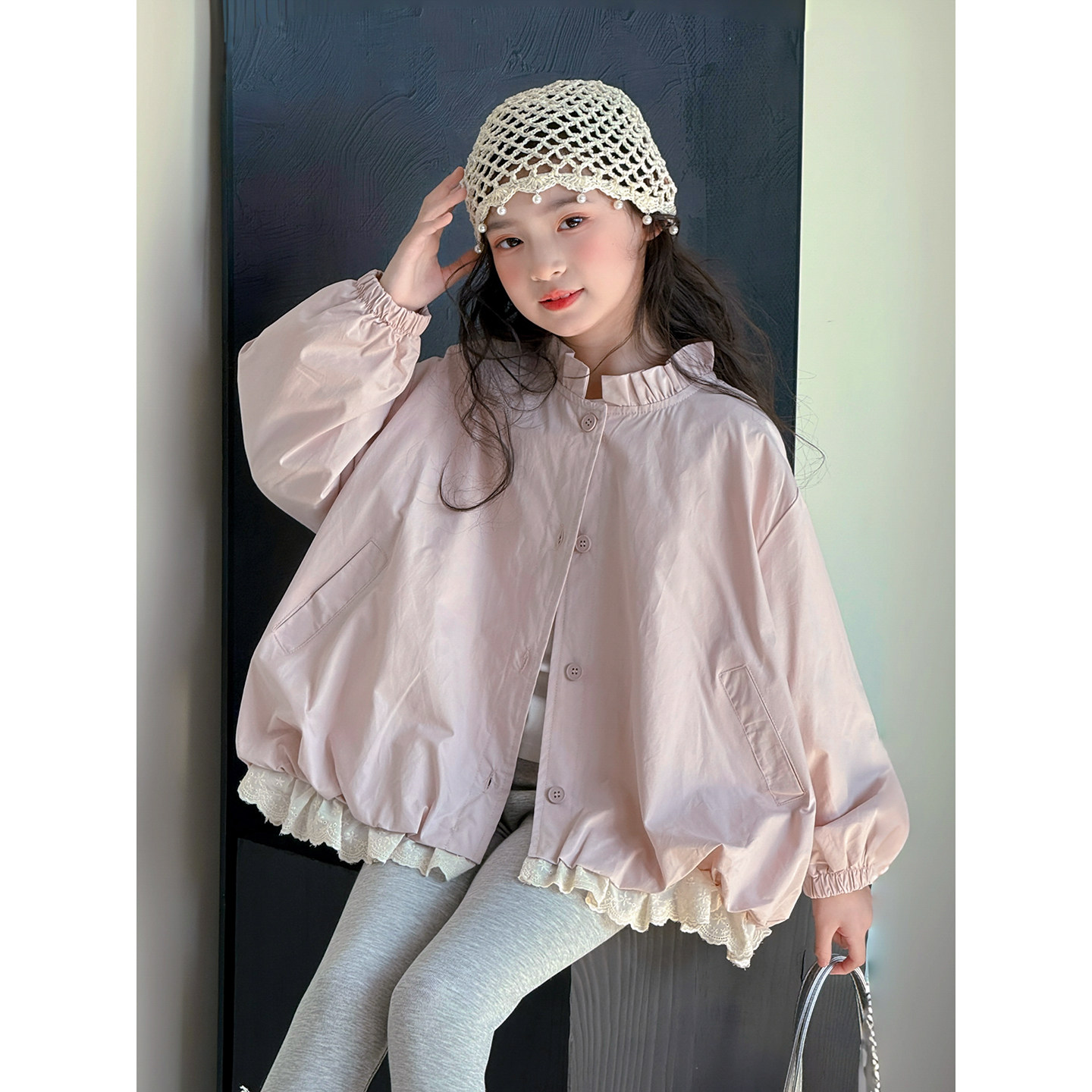 女童外套2026春季新款儿童花边拼接上衣春装中大童韩版休闲开衫潮