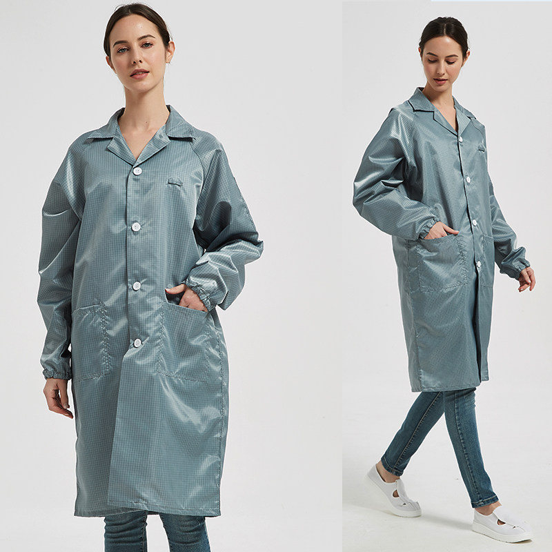 驭步百级静电衣大褂网格上衣无尘女蓝色格子防尘工作服装男富士康