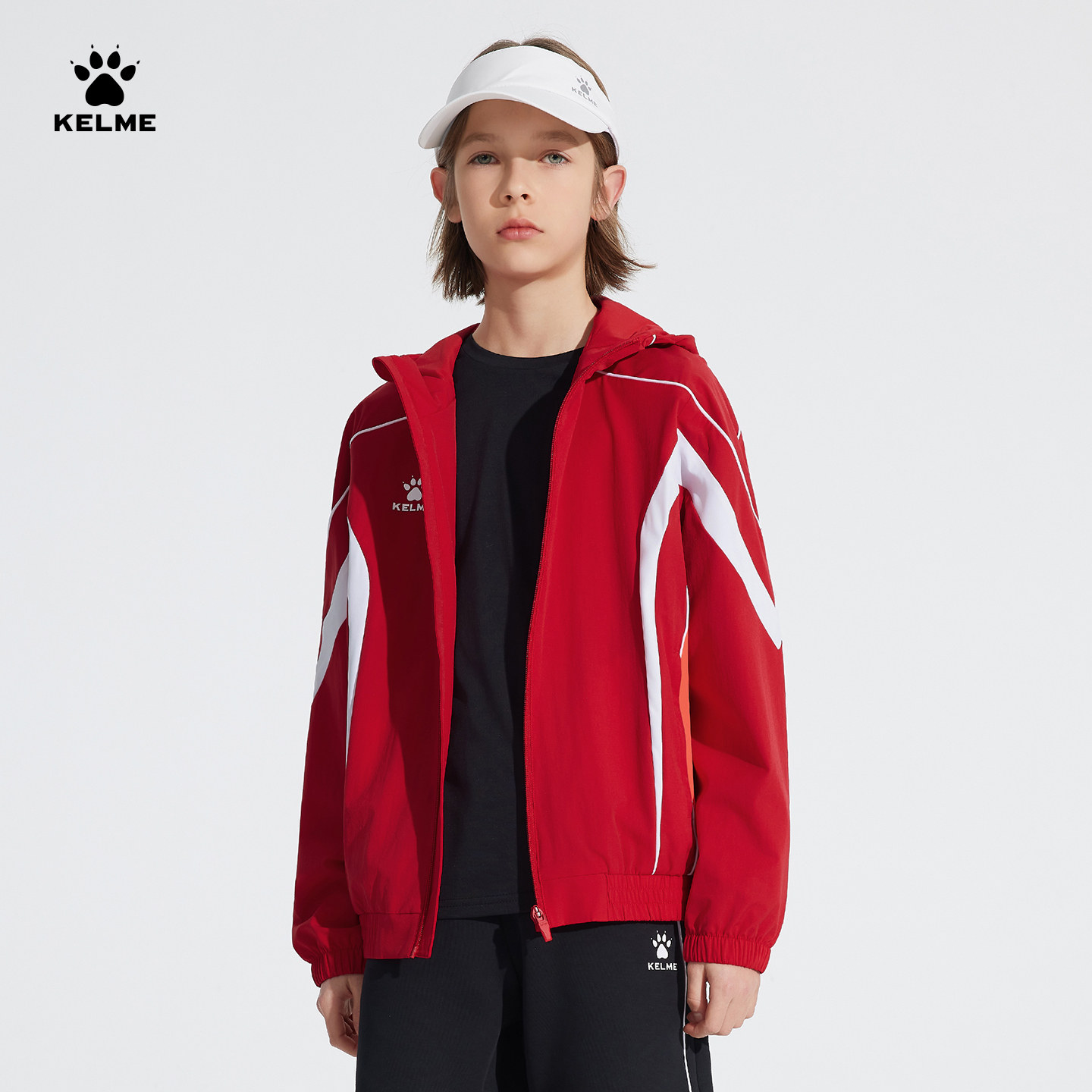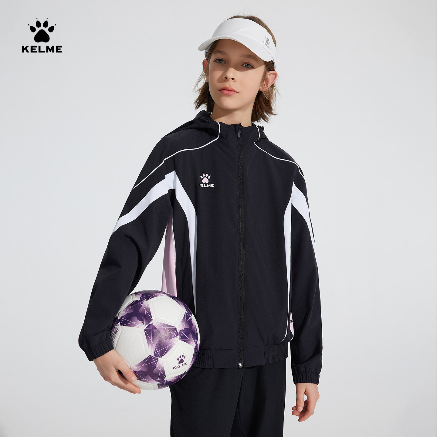 KELME卡尔美男女儿童运动风衣2026春季足球训练服防泼水连帽外套