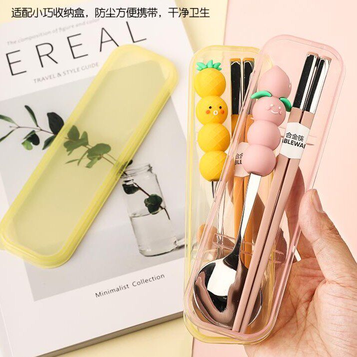 儿童筷子勺子套装小学生上学专用一人用可爱便携式外出餐具收纳盒
