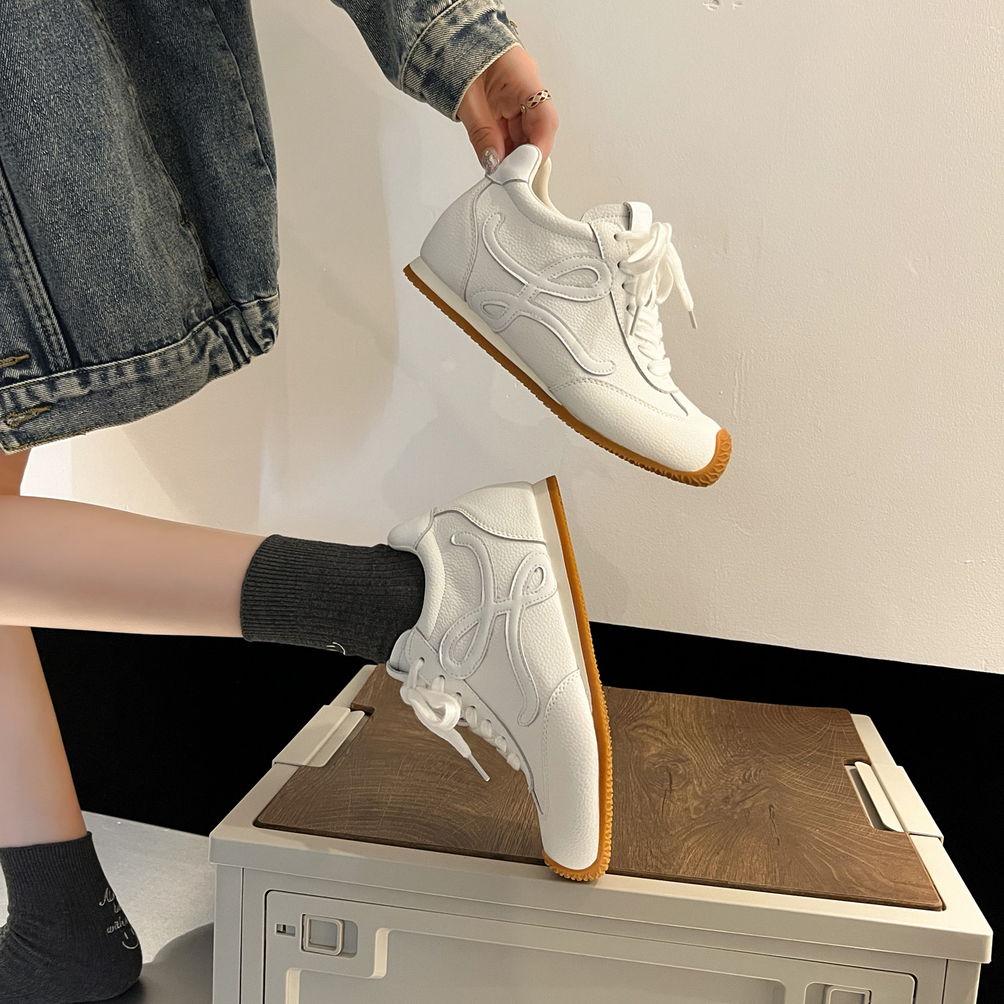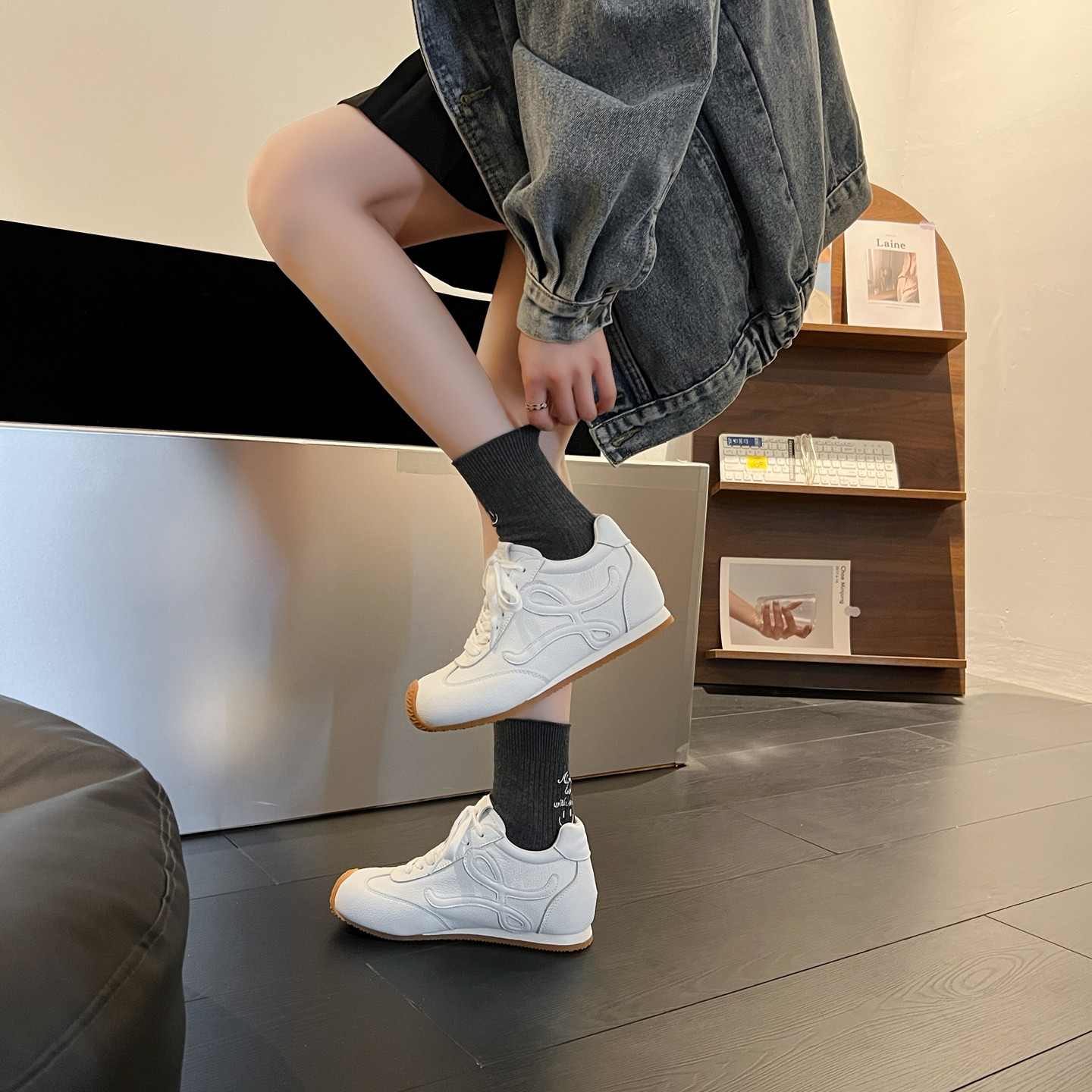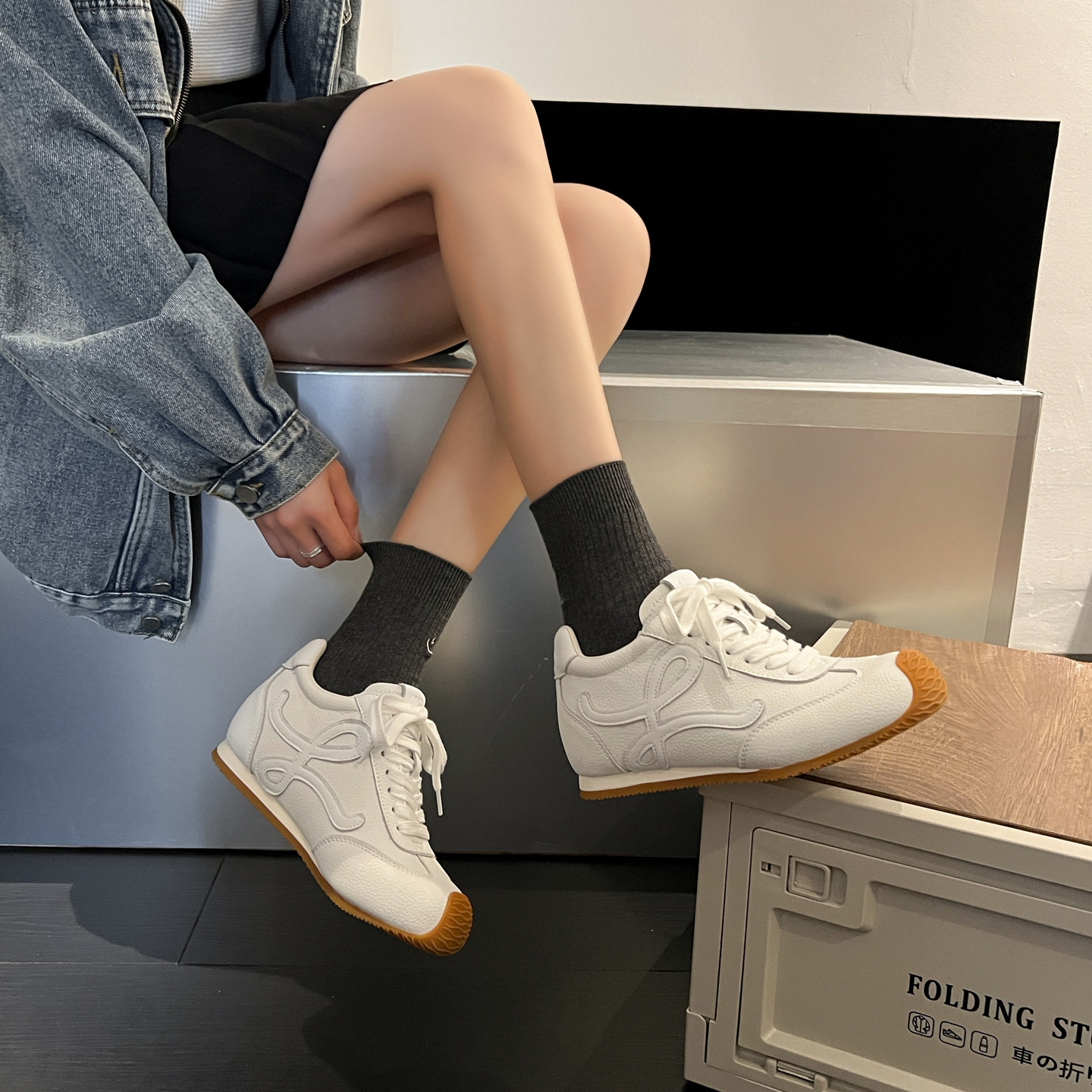 真皮内增高小白鞋女2026春季新款复古厚底德训鞋休闲运动阿甘鞋子