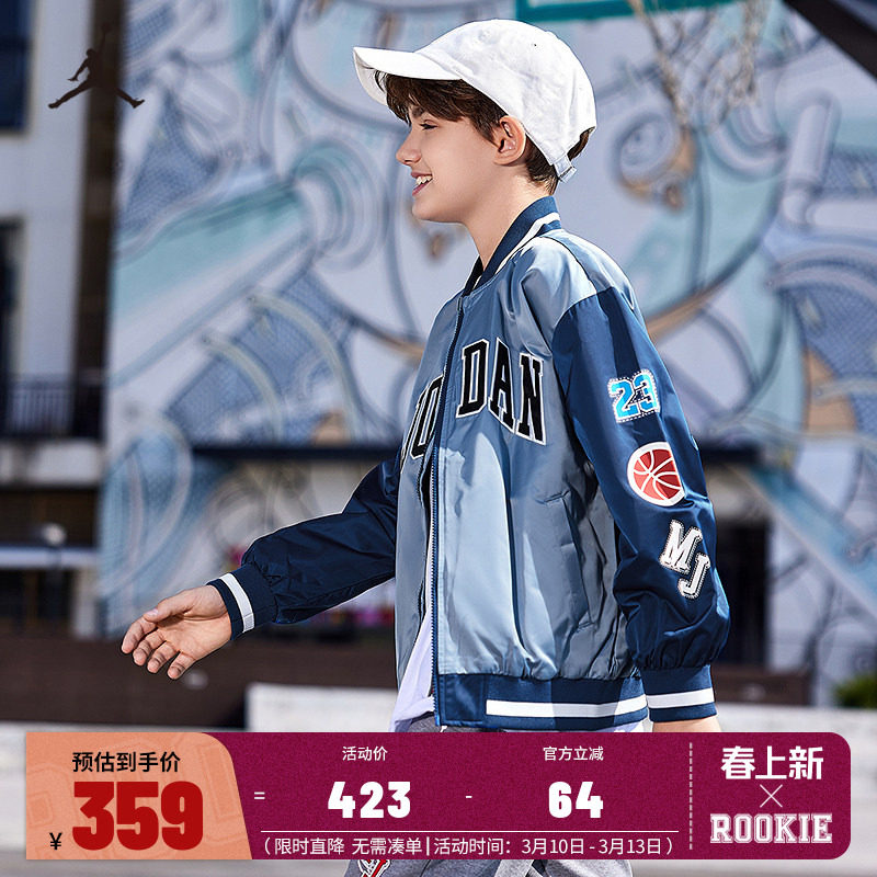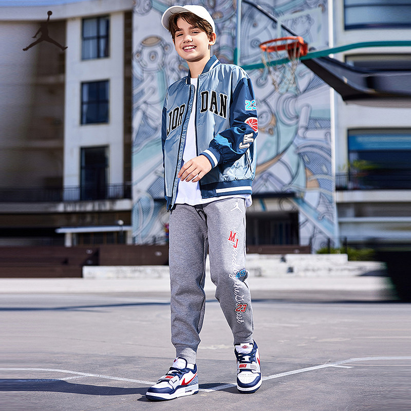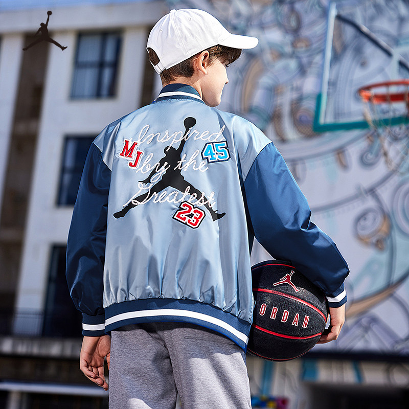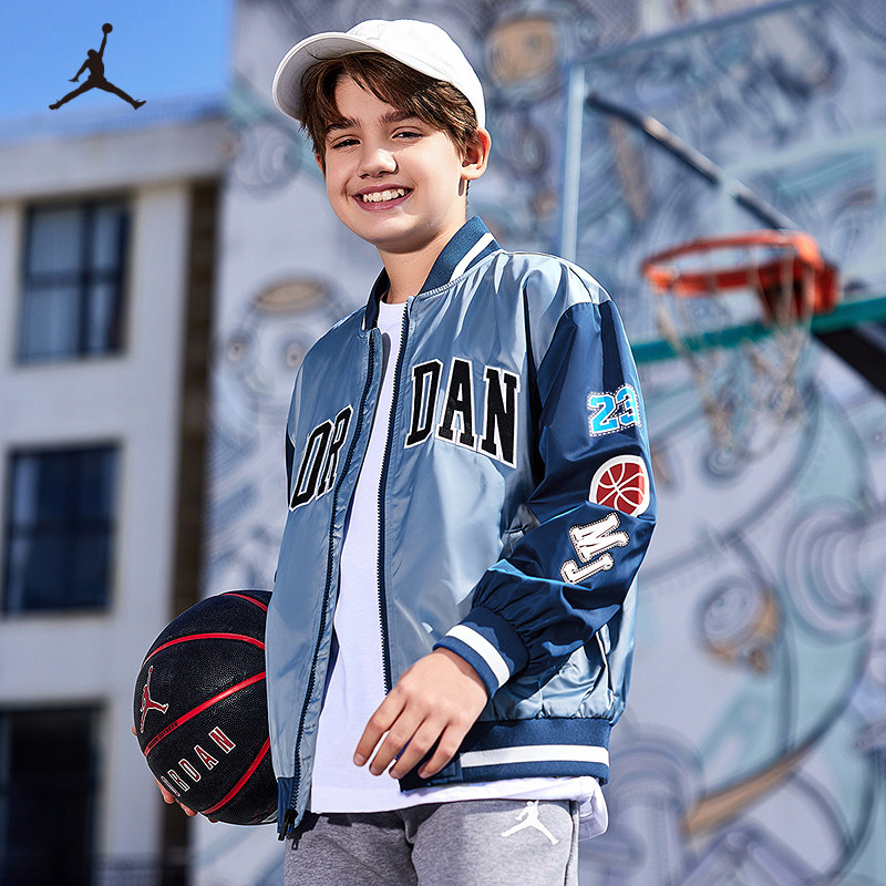 Jordan儿童装男童夹克春季新款大童篮球运动外套棒球服JD2412009