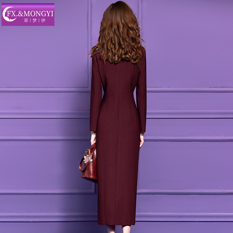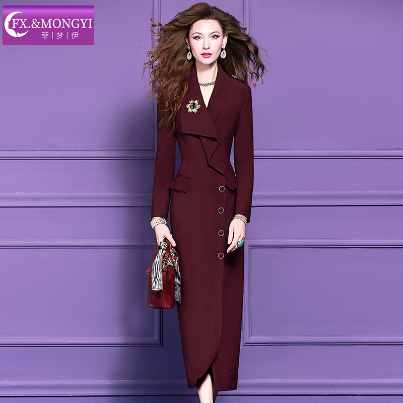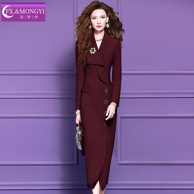 菲梦伊红色西装连衣裙女冬季荷叶边商务通勤气质中长款单排扣大衣