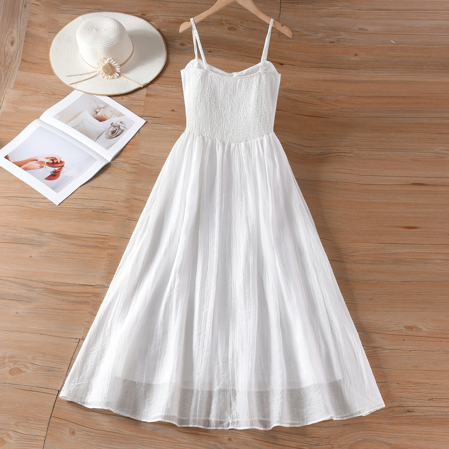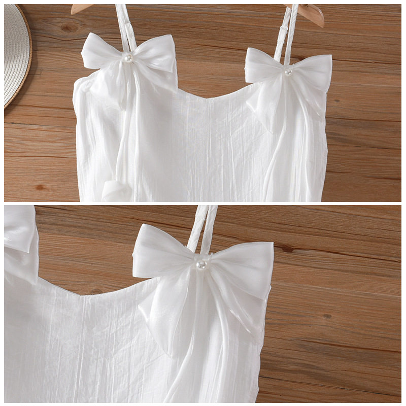 云南大理白色度假风连衣裙女夏季设计感蝴蝶结花苞收腰显瘦吊带裙