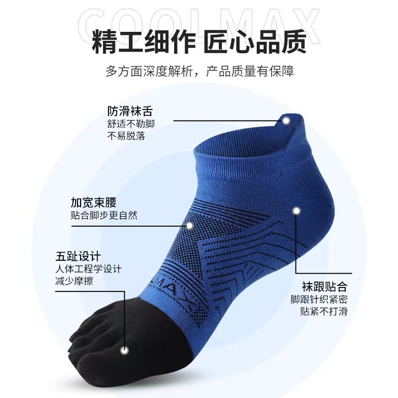 coolmax跑步五指袜男女短筒薄款防水泡马拉松排汗夏季运动袜3双装