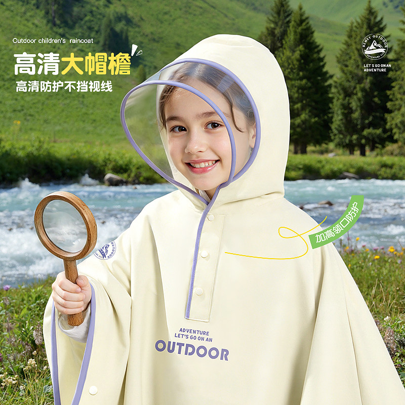 备美儿童雨衣小学生上学专用男孩女孩初中自行车斗篷雨披带书包位