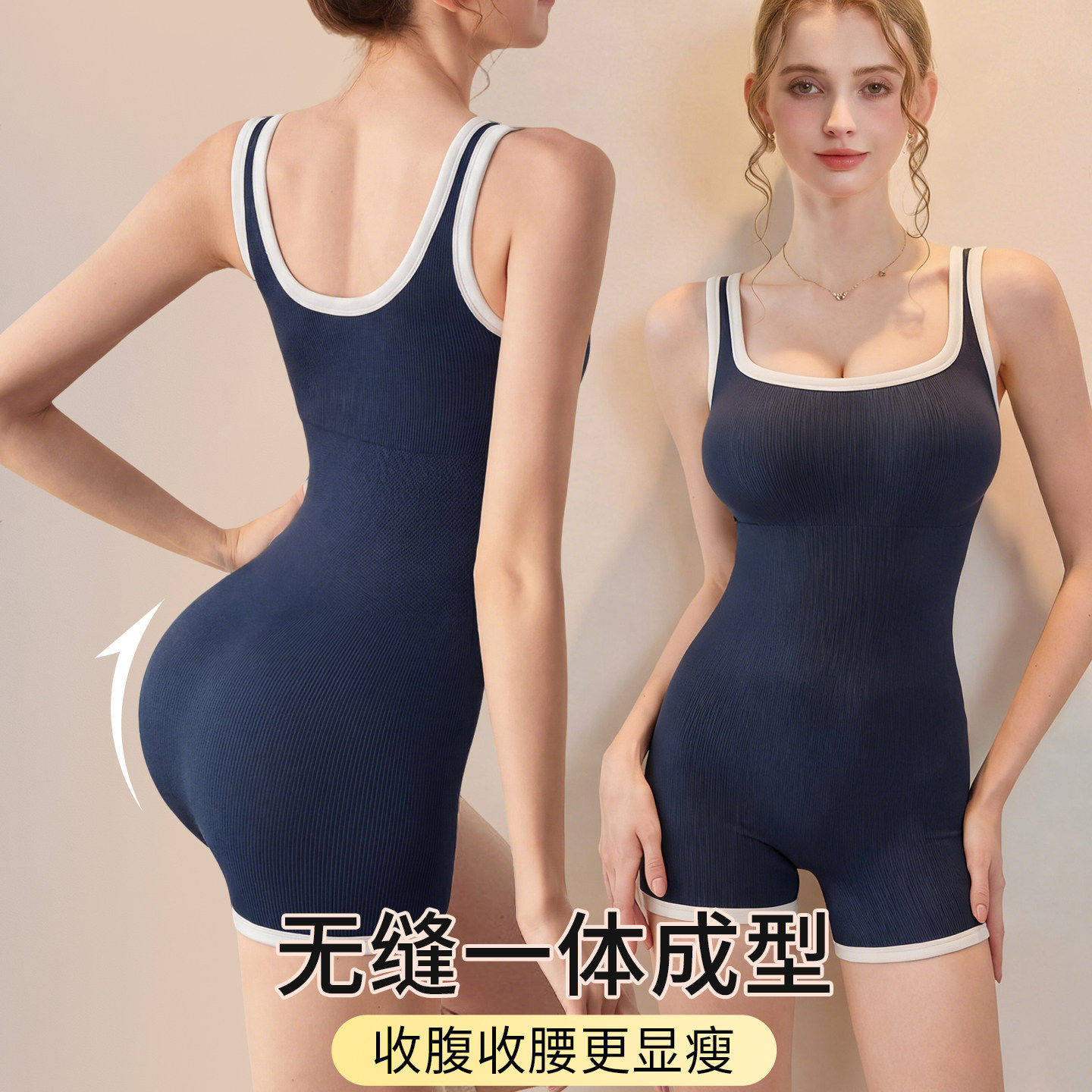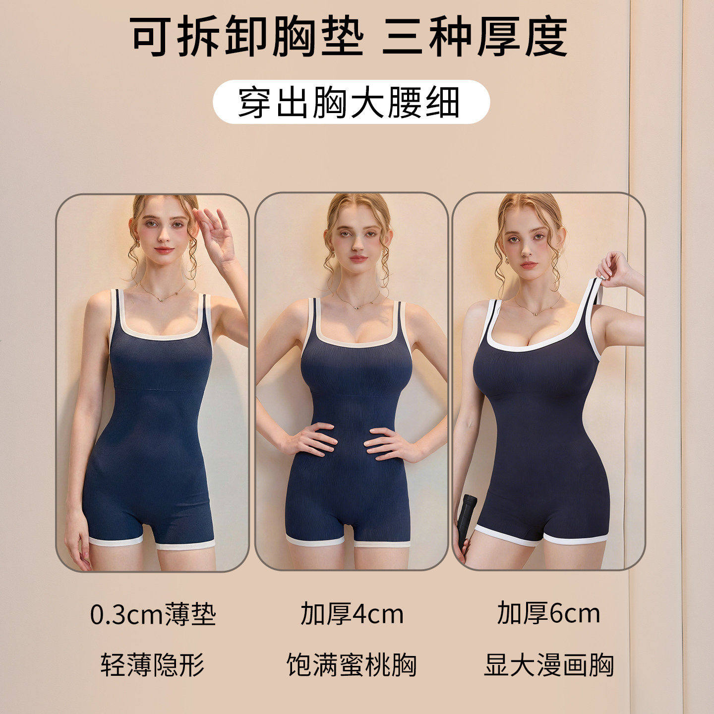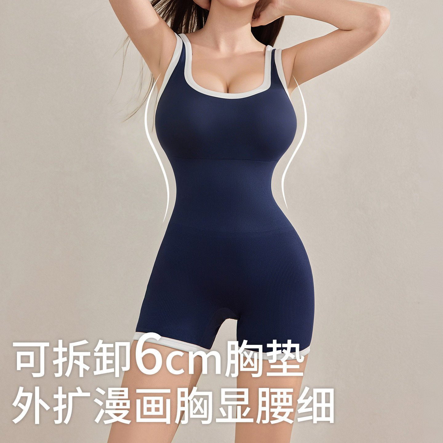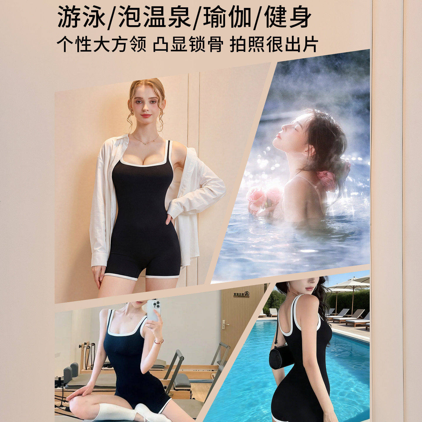 连身温泉泳衣女款带胸垫显胸大热辣欧美新款泡汤竞速吊带纯欲沙滩