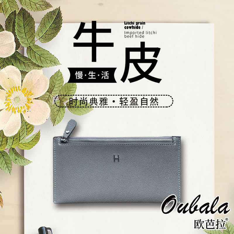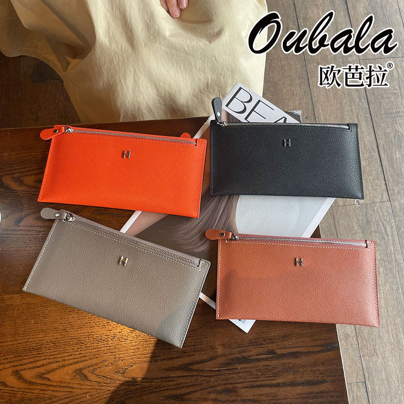 超薄真皮长款钱包女款2026新款设计感小众拉链高级感手包放手机的