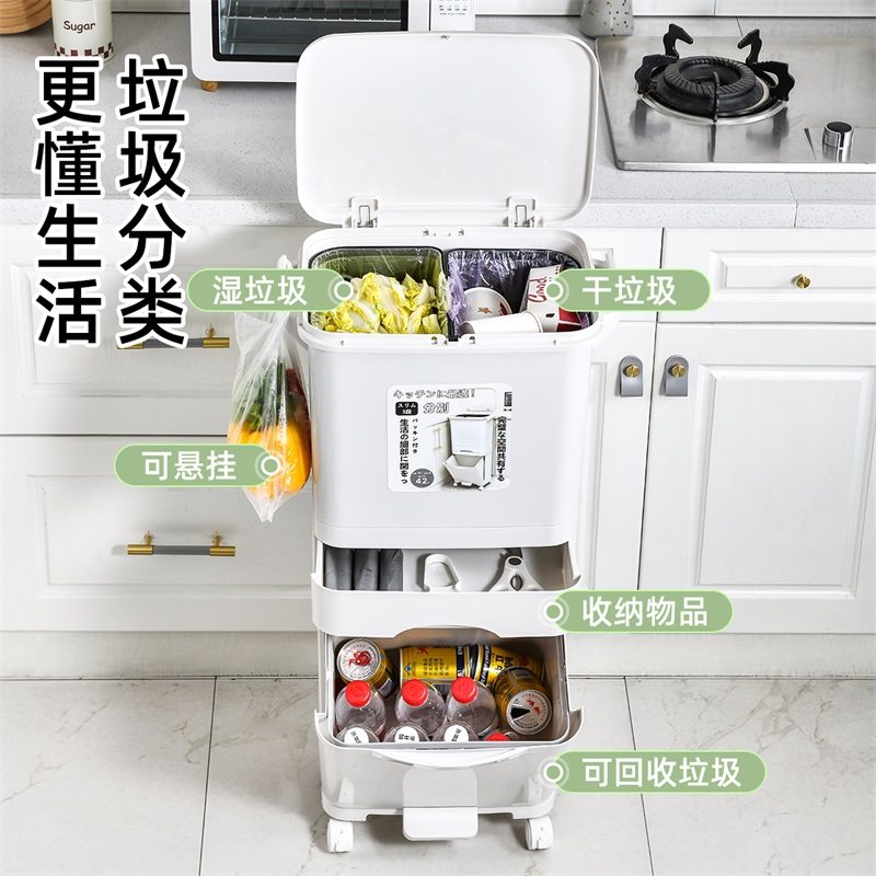 厨房垃圾桶家用干湿分离厨余筒分类带盖大容量高款不弯腰脚踩带盖