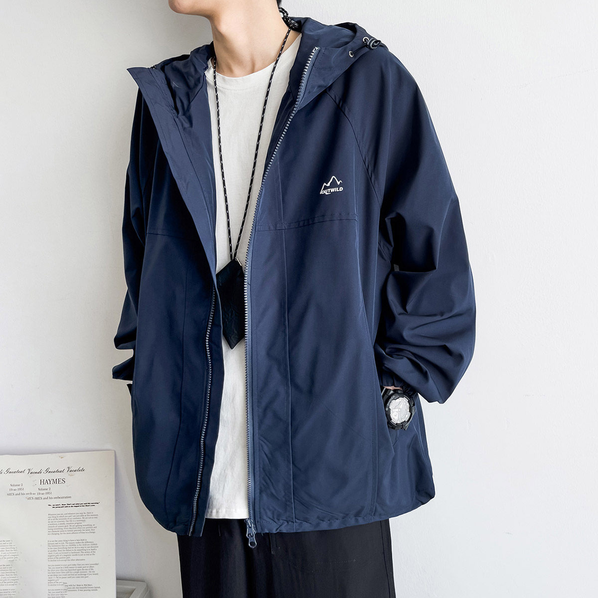 苏打汽水工作室日系男女款时尚印花连帽夹克春季宽松休闲百搭外套
