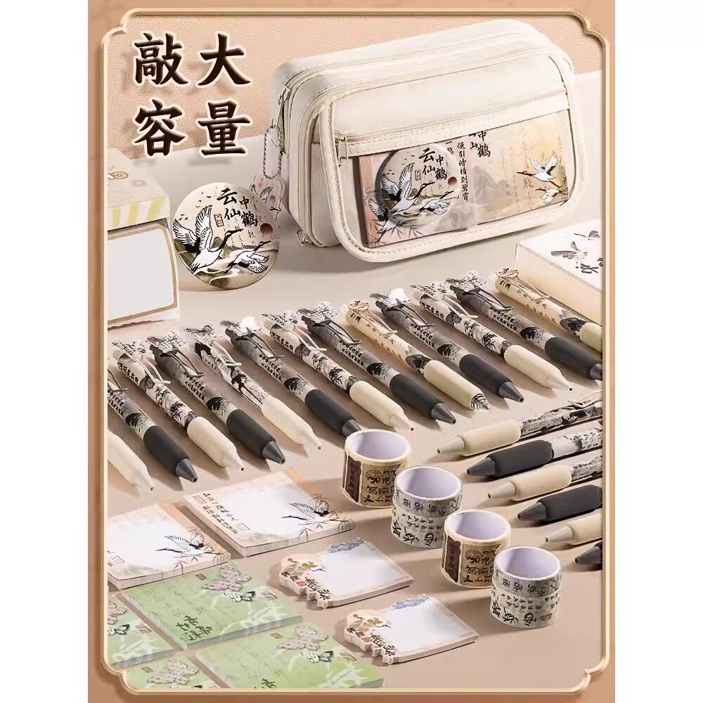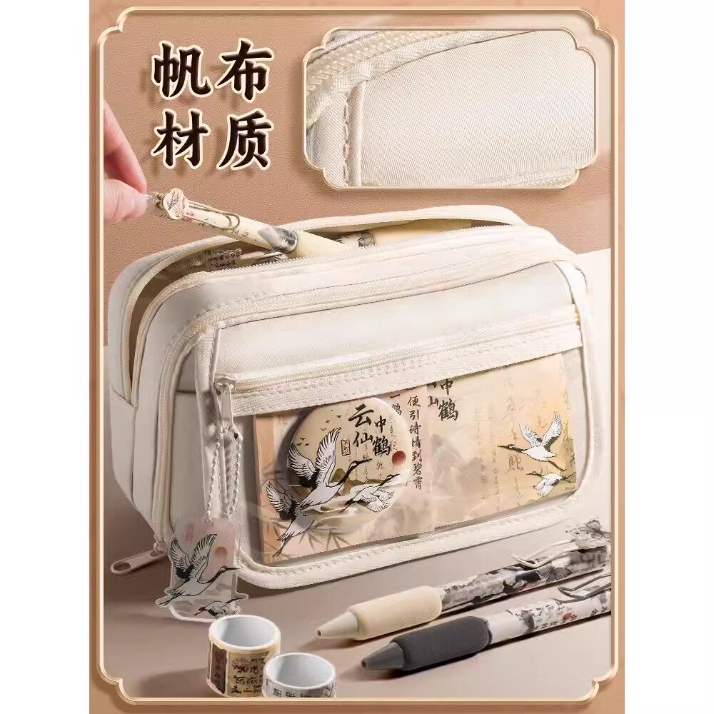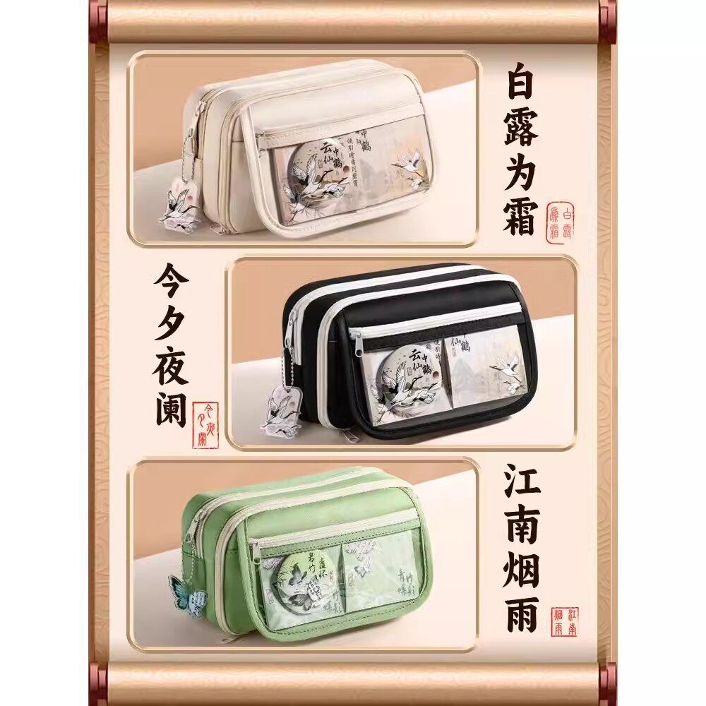 国风黑色笔袋2026超火男生文具盒高颜值ins风女孩小学生铅笔袋初高中大容量多层文具袋女生透明痛包笔袋文具