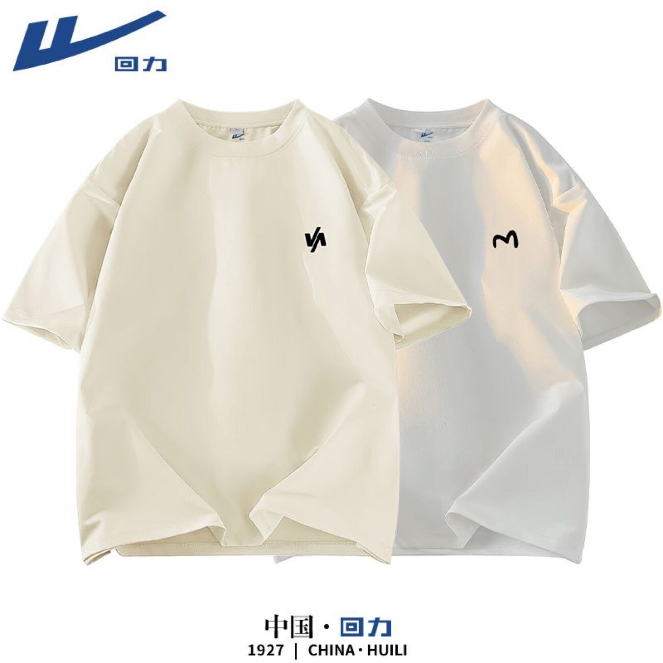回力白色短袖t恤男新款夏季纯棉半袖青少年重磅宽松男生长袖衣服Y