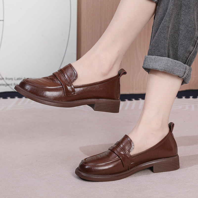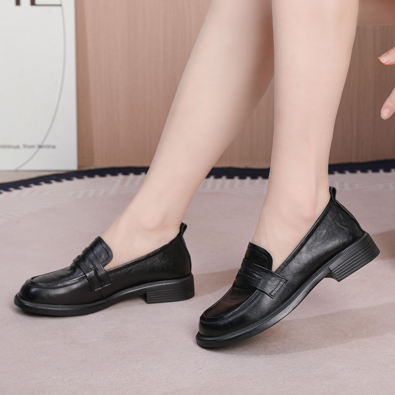 英伦风百搭一脚蹬单鞋女春夏通勤女鞋43舒适软底大码鞋橡胶底防滑