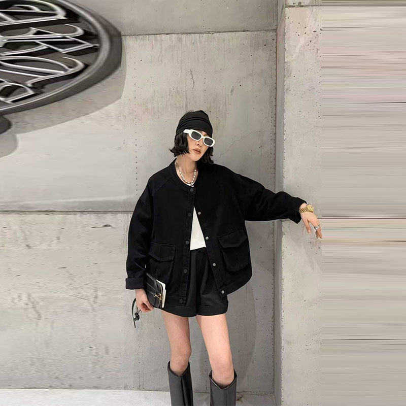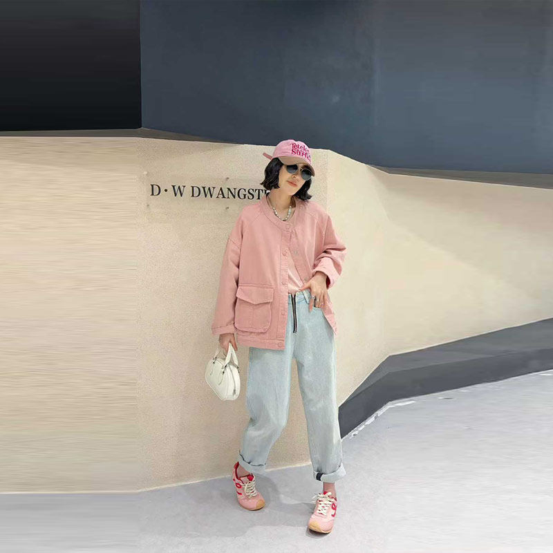 胖MM加肥圆领双兜长袖外套2026早春新款百搭韩版大码女装休闲上衣